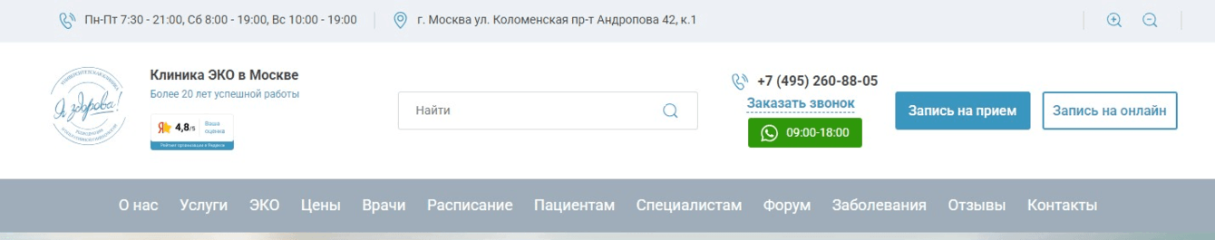 ✅кнопка записи на приём в липкой шапке сайта, которая всегда перед глазами у посетителей;