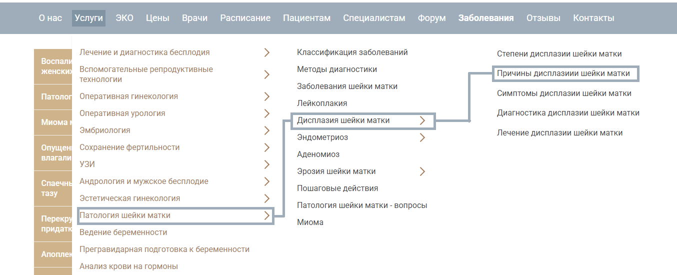 ?Дисплазия шейки матки, причины — https://www.ya-zdorova.ru/uslugi/patologiya-shejki-matki/displaziya/prichiny/.