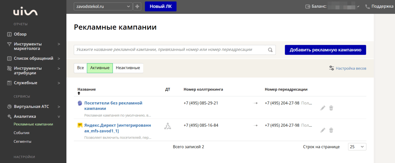 3. Внедрение виртуальной телефонии на базе uis.com. Подключение динамических подменных номеров для контроля ppc-рекламы и органического трафика.