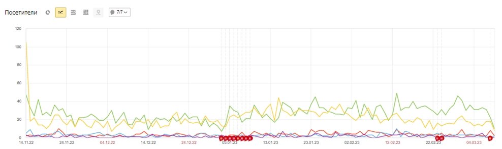 Всего за 4 месяца продвижения количество посетителей сайта стабильно увеличивалось и держалось на высоком уровне. Позитивная динамика сохраняется: по мере выхода новых ключевых слов в топ-10 Яндекса и Google трафик продолжает расти.