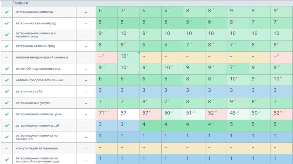 Основной упор сделан на коммерческие запросы, такие как «ветеринарная клиника» и «ветеринарные услуги». Это дало не только рост позиций в поиске, но и реальное увеличение заявок и приток новых клиентов.