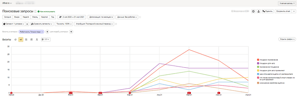 — Было слабое семантическое ядро: много релевантных запросов, по которым приходит целевая аудитория, отсутствовали на сайте.
