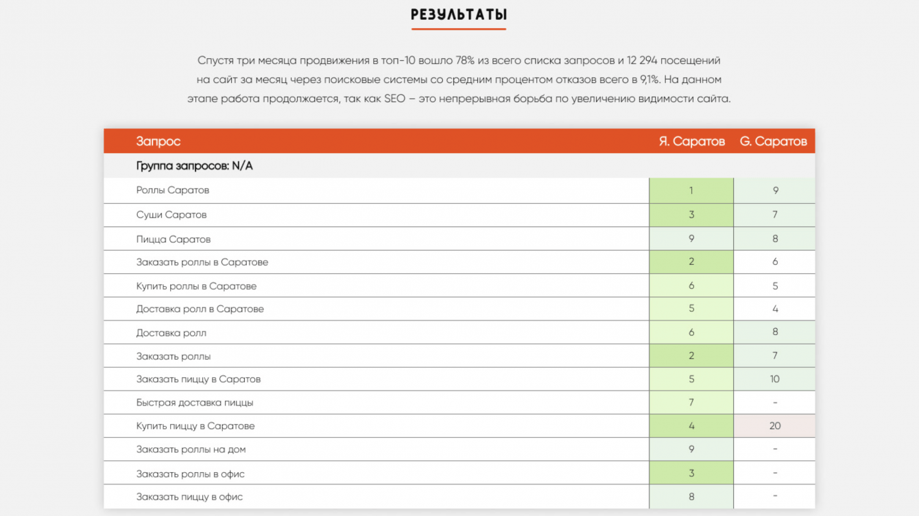 Крайне приятные и впечатляющие результаты по SEO оптимизации для сети ресторанов суши и роллов
