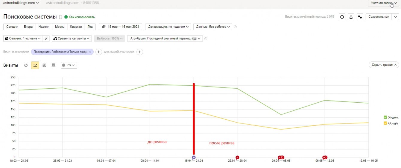 На графике видно, что просадка трафика с поиска в первые 3 недели после релиза не более 35%