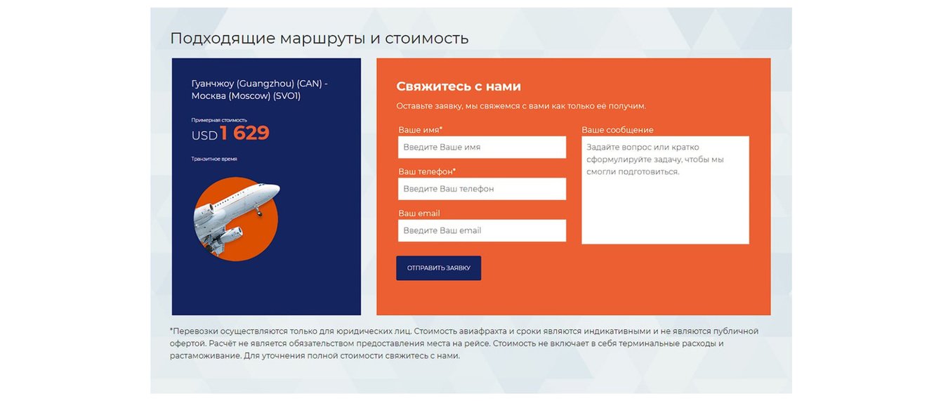 Пользователь приходит не читать общий текст "О компании". Обычно его интересуют маршрут, параметры груза, сроки и ориентир по стоимости.
