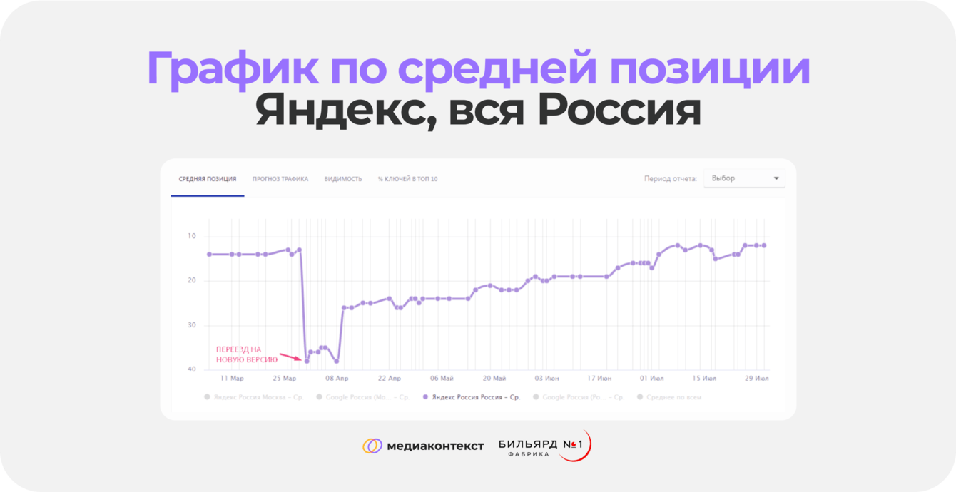 У компании не было опыта перехода на новую версию сайта и переезда на https-протокол, однако компания понимала, что переход на новую версию может нести затяжное падение позиций.
