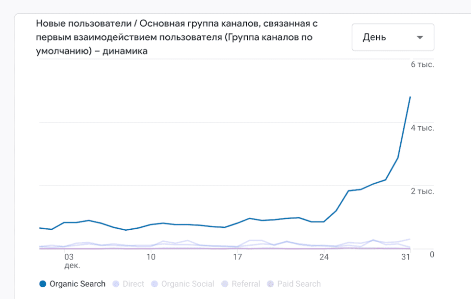 Редакция согласовала все темы, а по итогам декабря сайт посетило более 35 000 человек. После Нового года мы получили дополнительный результат: многие статьи по нашим ТЗ вышли в топ Google и начали стабильно приносить органический трафик.
