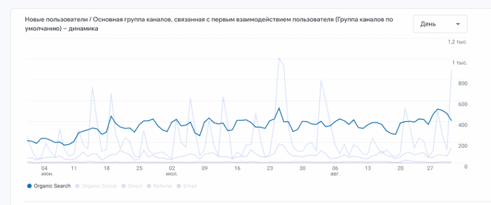 Итак, с первого раза нам не удалось достичь KPI: прирост за три месяца составил лишь 20%: в августе трафик достиг 12 000 посетителей.