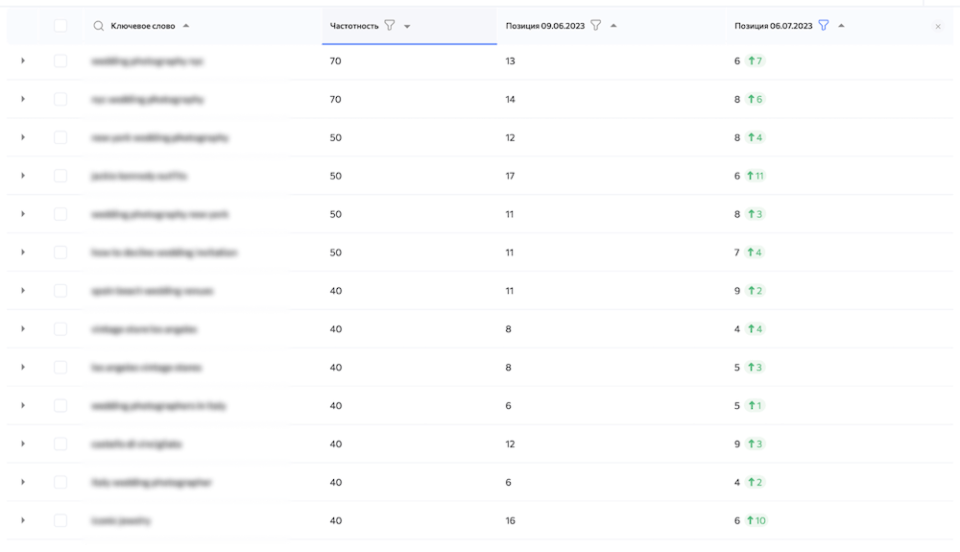 Главная цель команды LZ.Media — удвоить поисковый трафик за 3 месяца: с 10 000 посетителей в июне до 20 000 к концу августа. Для ее выполнения требовалось обеспечить рост позиций по приоритетным запросам и привлечь новых пользователей через блоговый раздел журнала. Дополнительно нужно было оптимизировать ключевые страницы каталога свадебных специалистов и не допустить падения текущего трафика на фоне изменений в структуре сайта и контенте.