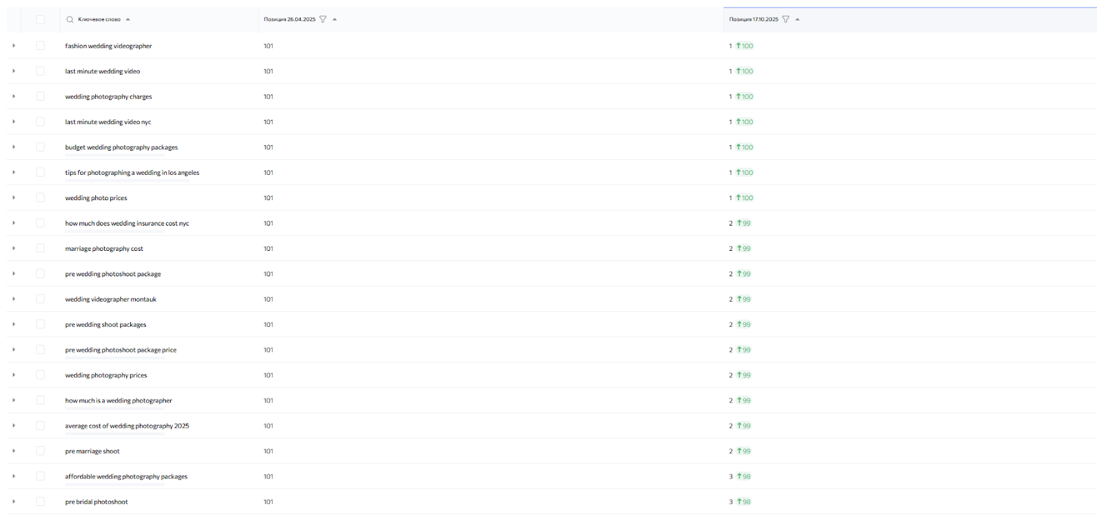 Сотрудничество с Arrakis Films Wedding подтверждает позицию LZ.Media, сформированную на других англоязычных проектах: вы можете продвигать сайт на аудиторию США даже без ссылок и в условиях высокой конкуренции. Но нужно быть готовыми к тому, что позиции придется «завоевывать» количеством страниц, а значит, и объемами контента. Так что нужно заранее или на первых этапах работы продумывать способ его быстрого и массового создания.