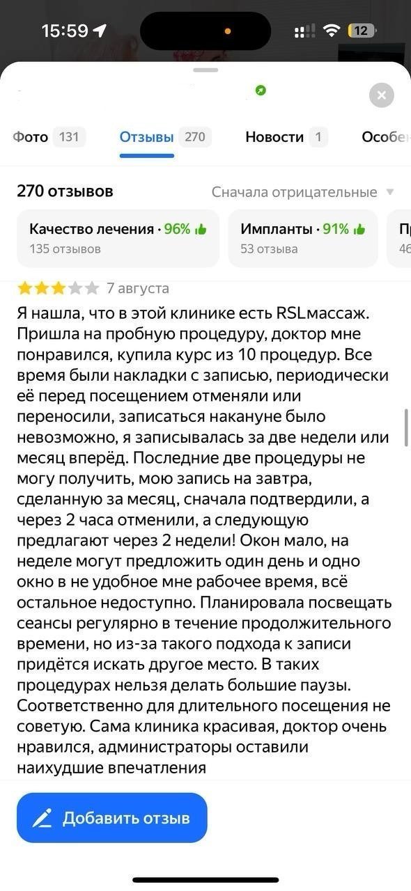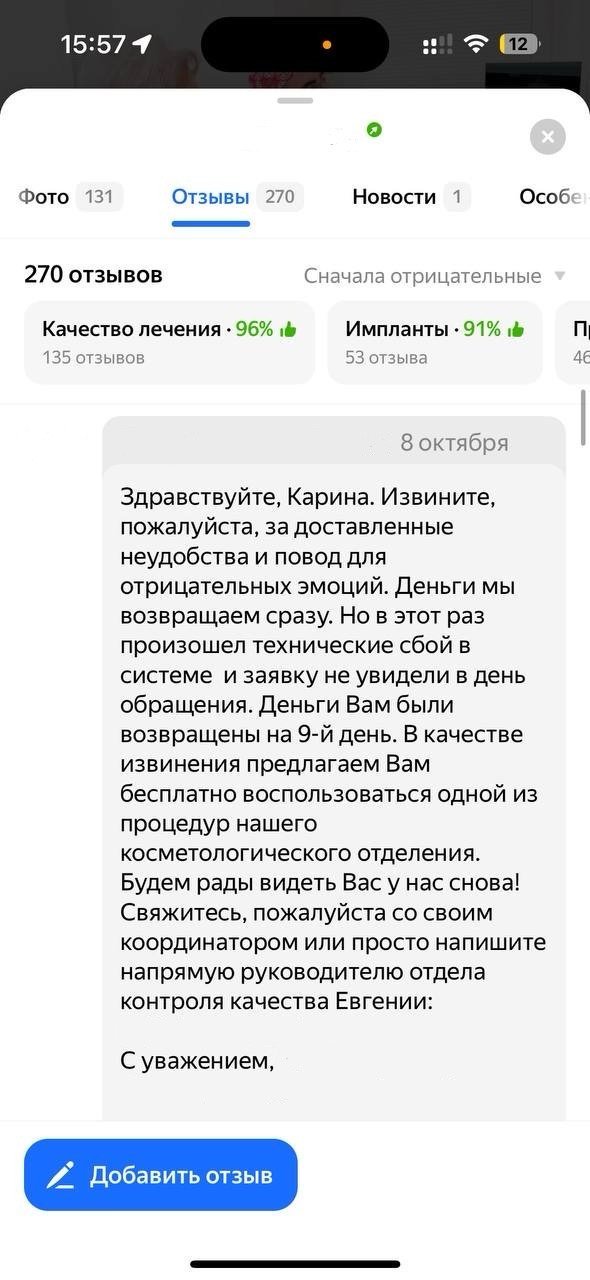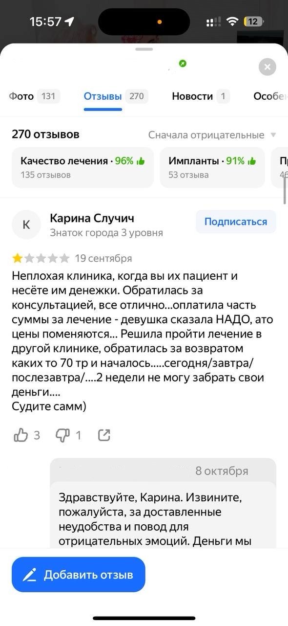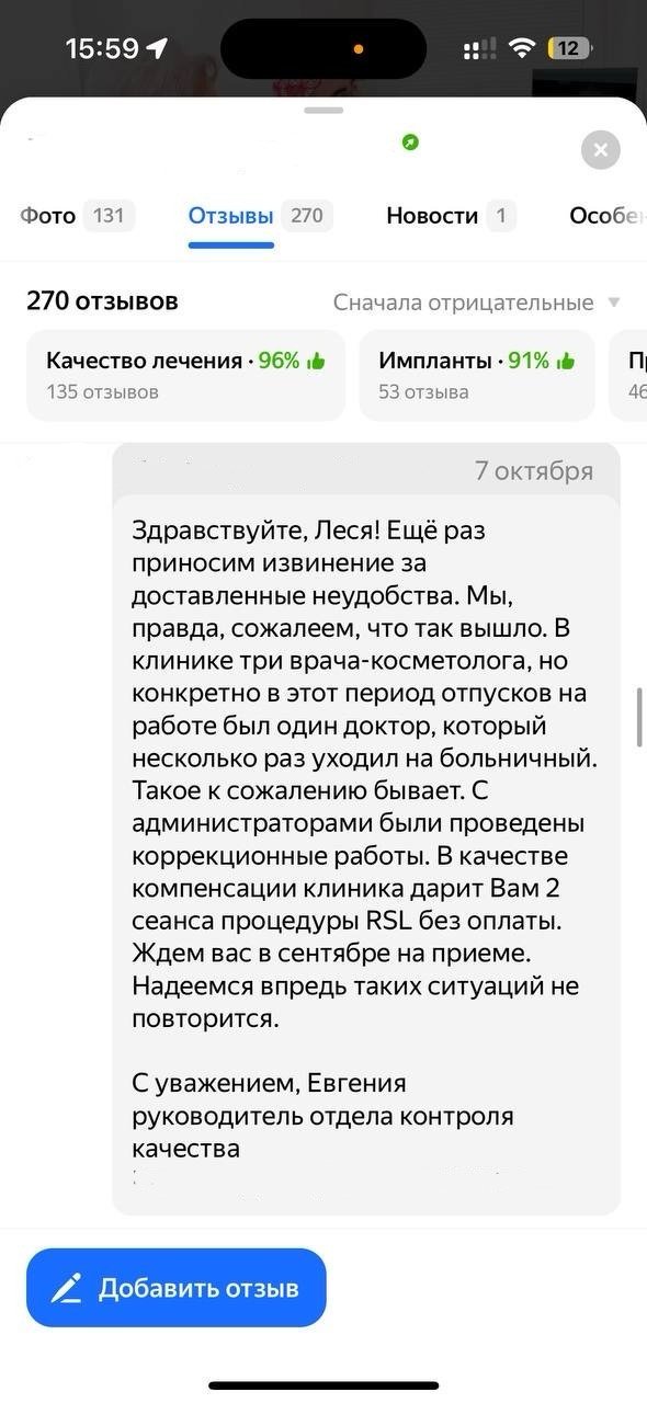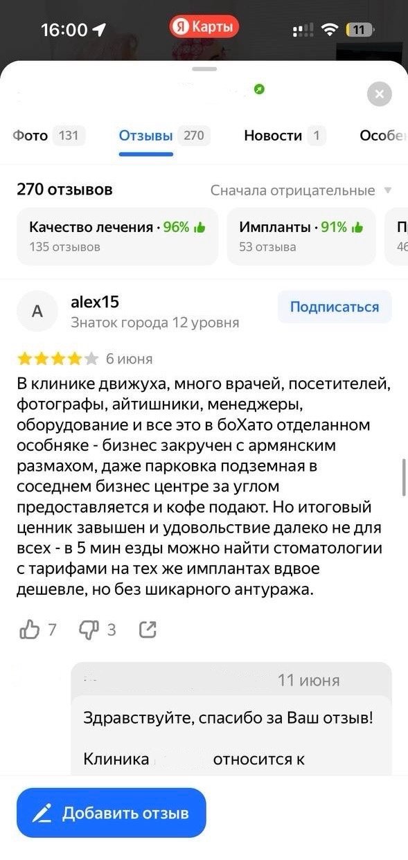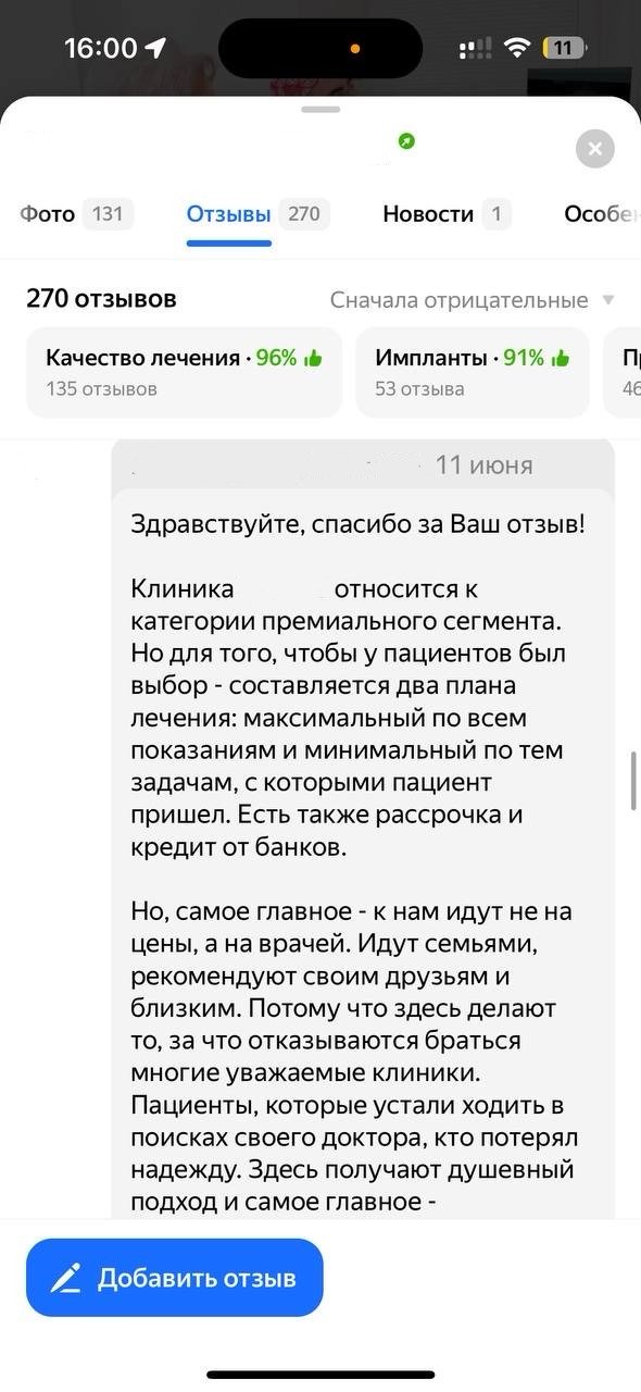 Улучшение репутации клиники с помощью работы с отзовиками и негативными комментариями.
