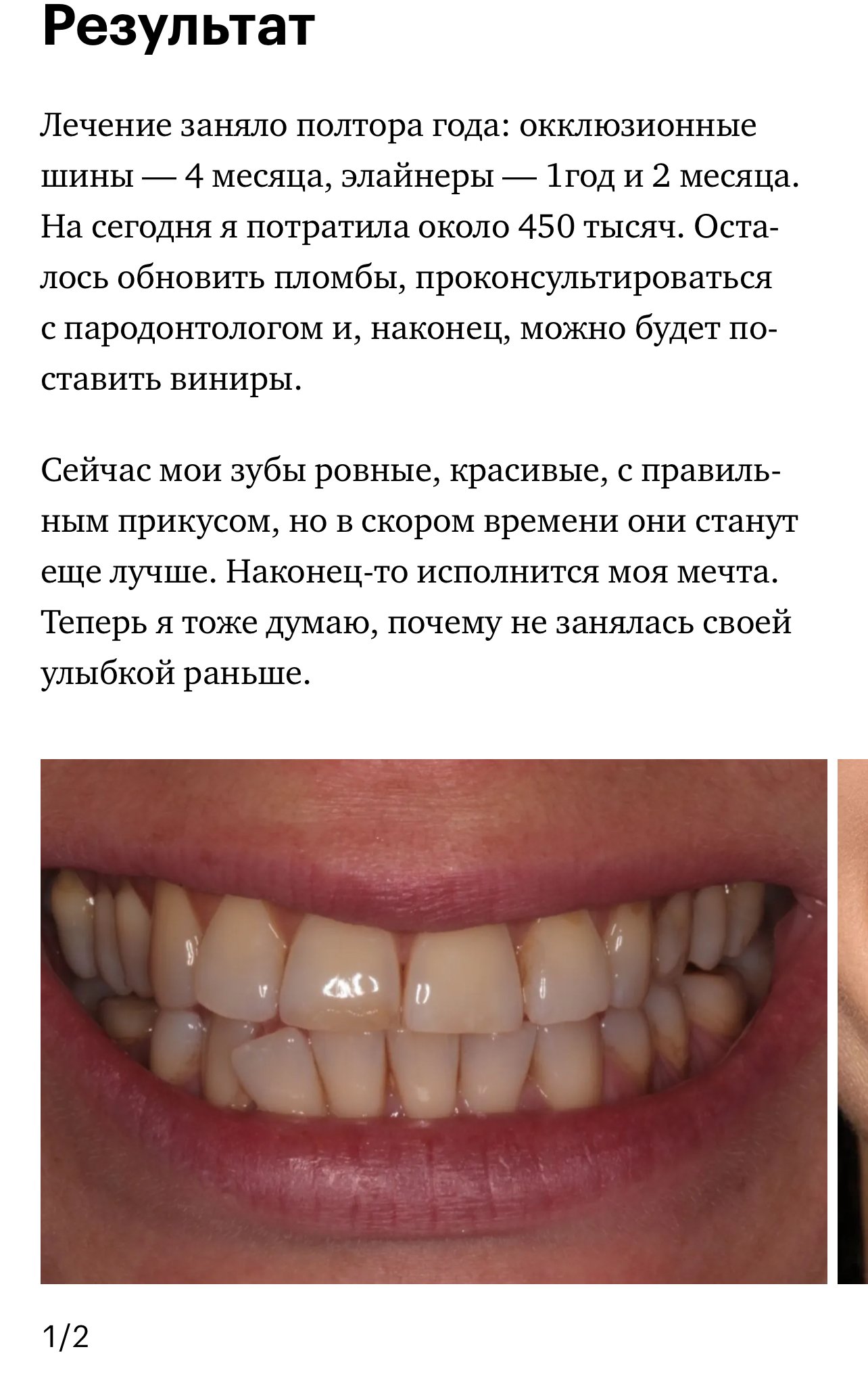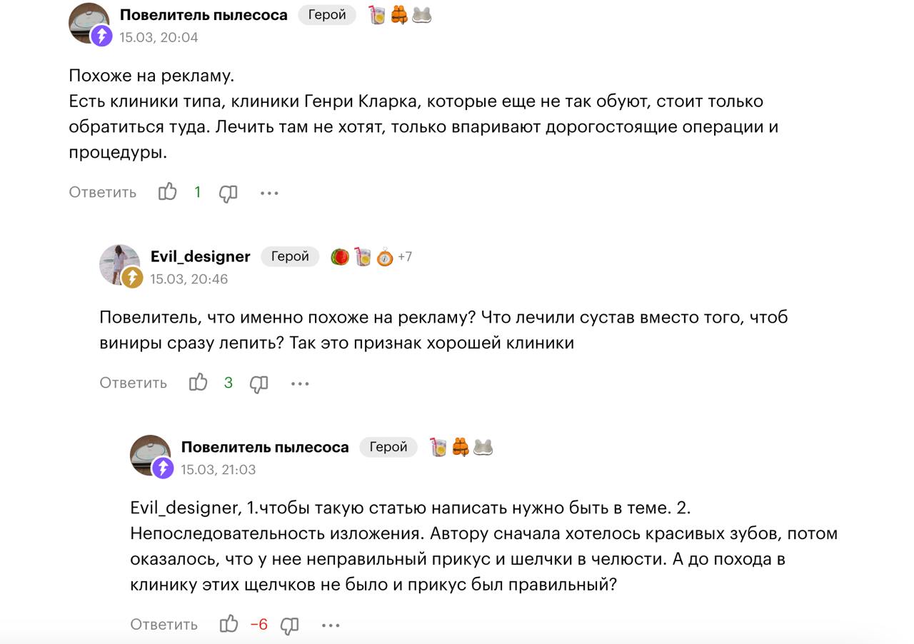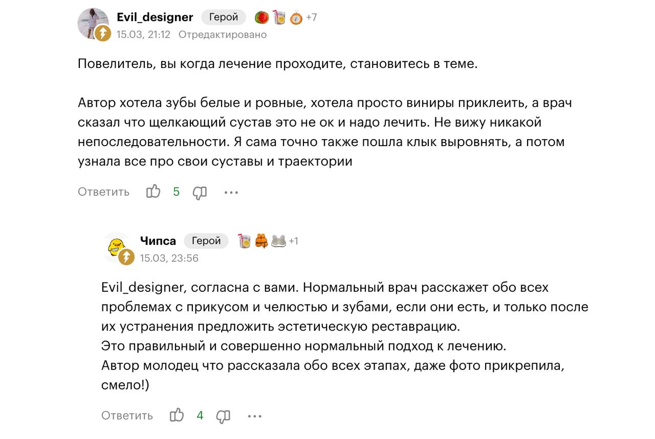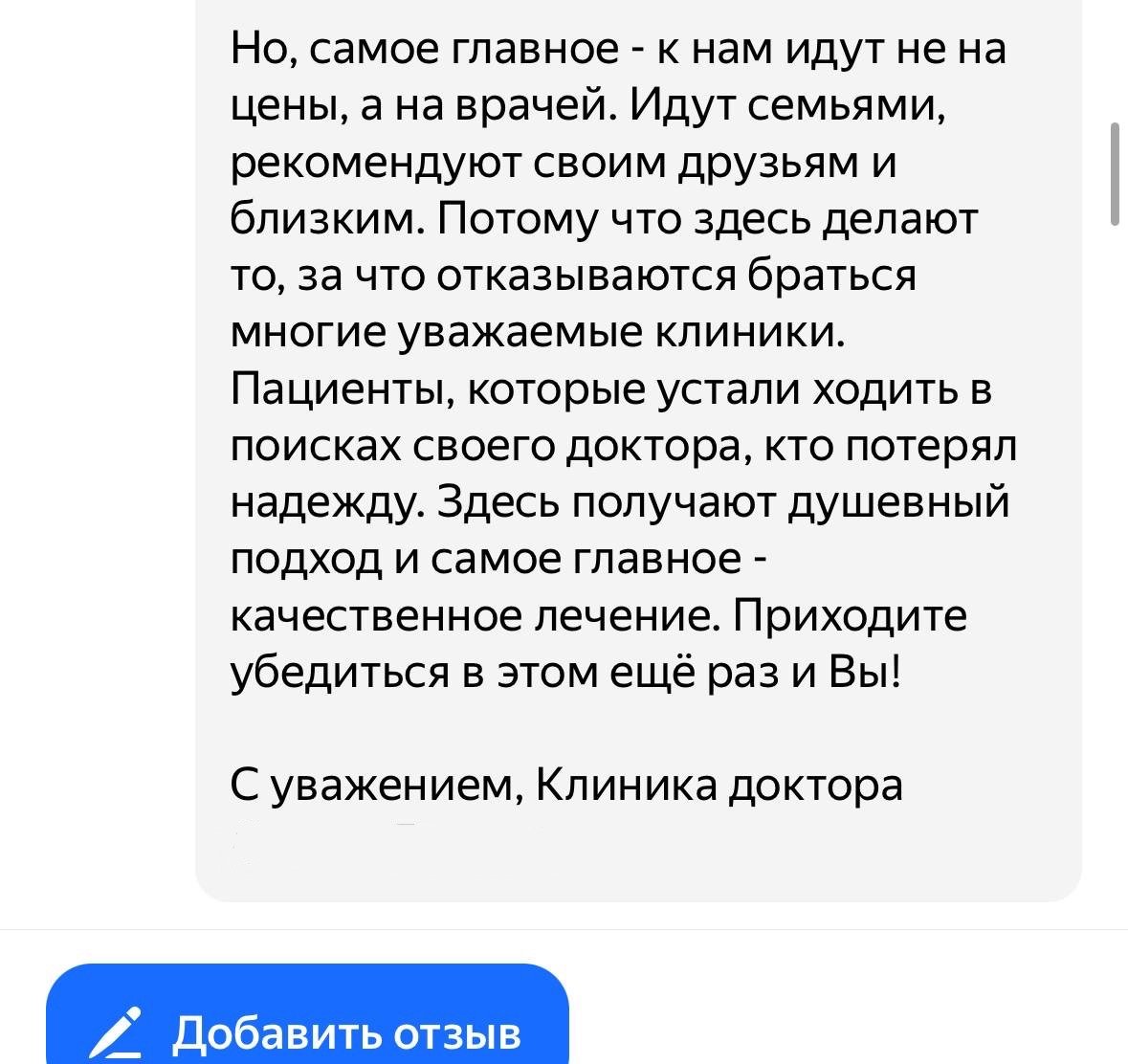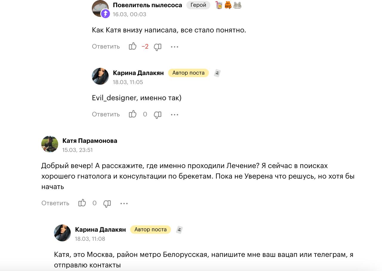 Размещаются максимально подробные отзывы с реальной историей пациента, процессом лечения, ценами и фотографиями.