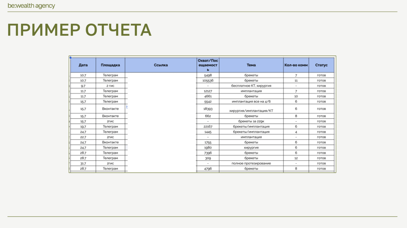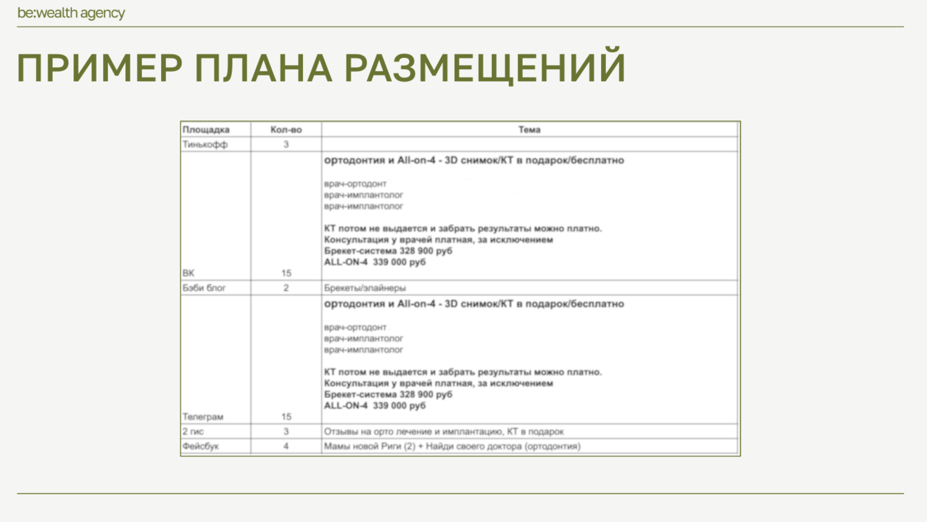 — подобраны площадки, на которых присутствует ЦА клиники