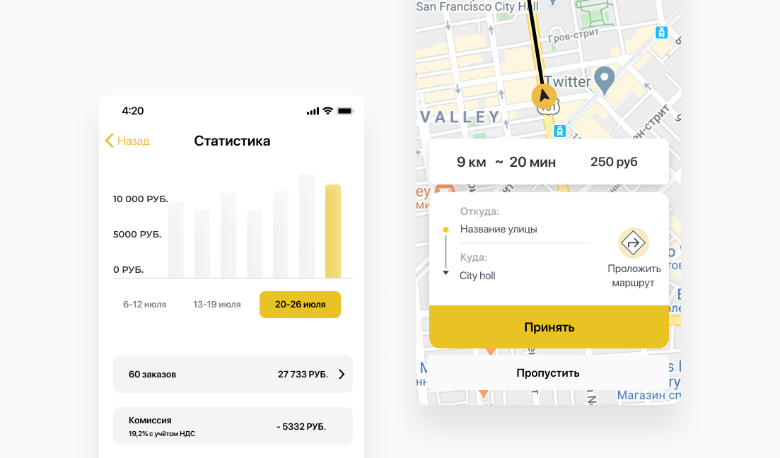Запустить полноценный такси-сервис с нуля за короткий срок. Необходимо было реализовать весь цикл работы: от регистрации и подачи заявки до управления поездками и выплатами, при этом обеспечить простоту использования и масштабируемость платформы.