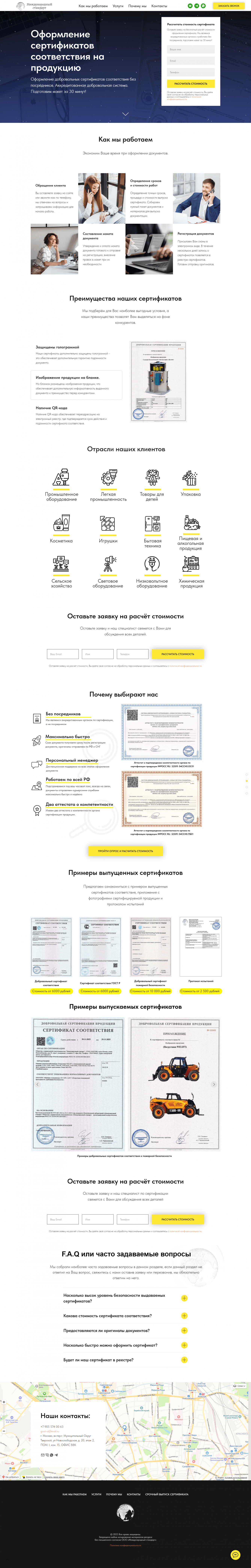 Лидогенерация для компании занимающейся сертификацией продукции. Разработка посадочной страницы с последующей настройкой и ведением рекламных кампаний Яндекс Директ по всей РФ