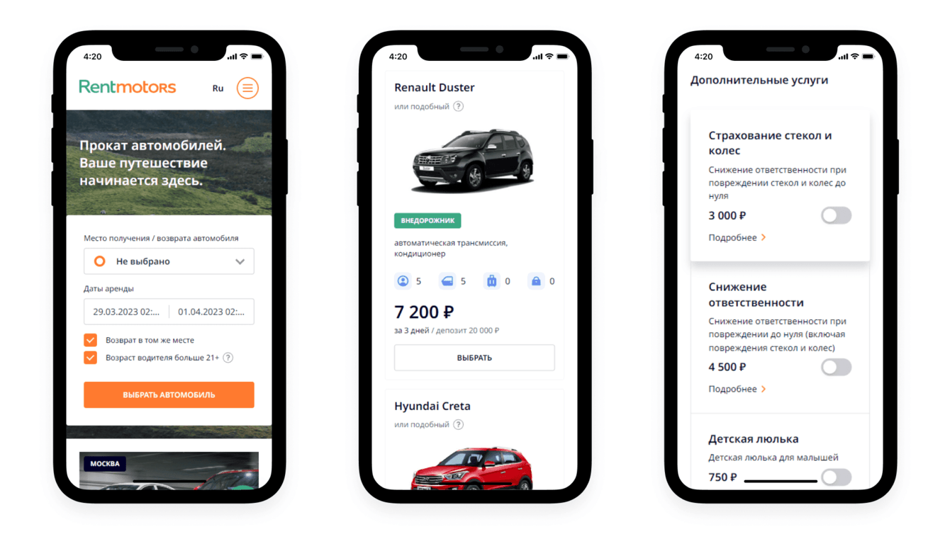 На новом сайте RentMotors клиент может забронировать машину за 10 минут.