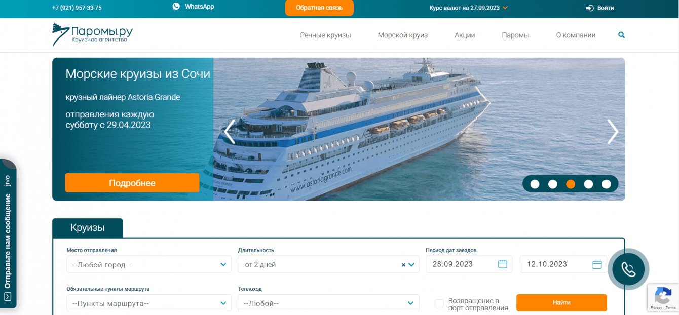 Разработка сервиса бронирования билетов для агентства речных круизов Паромы.ру