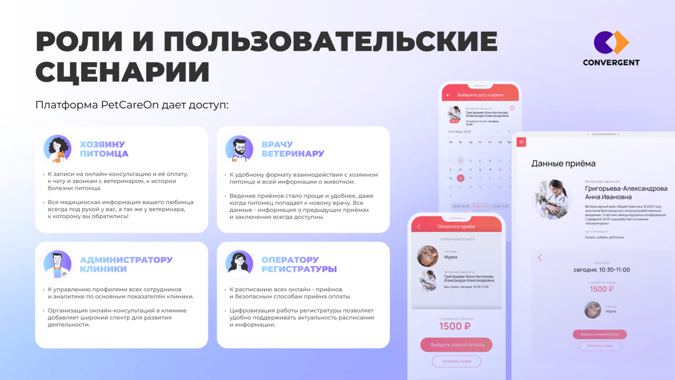 Агентство Convergent взялось за разработку сервиса PetCareOn с мобильным приложением и веб-версией, который позволяет клиникам внедрить услугу онлайн-консультаций с минимальными затратами.