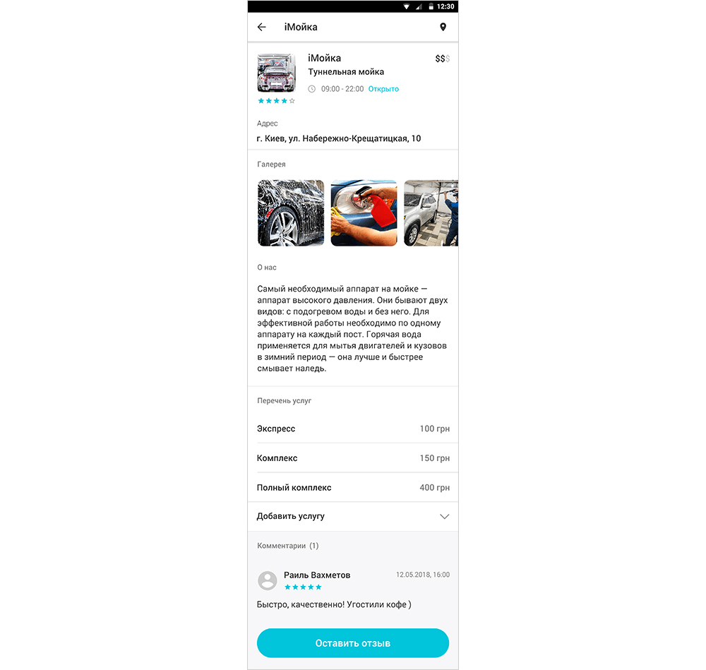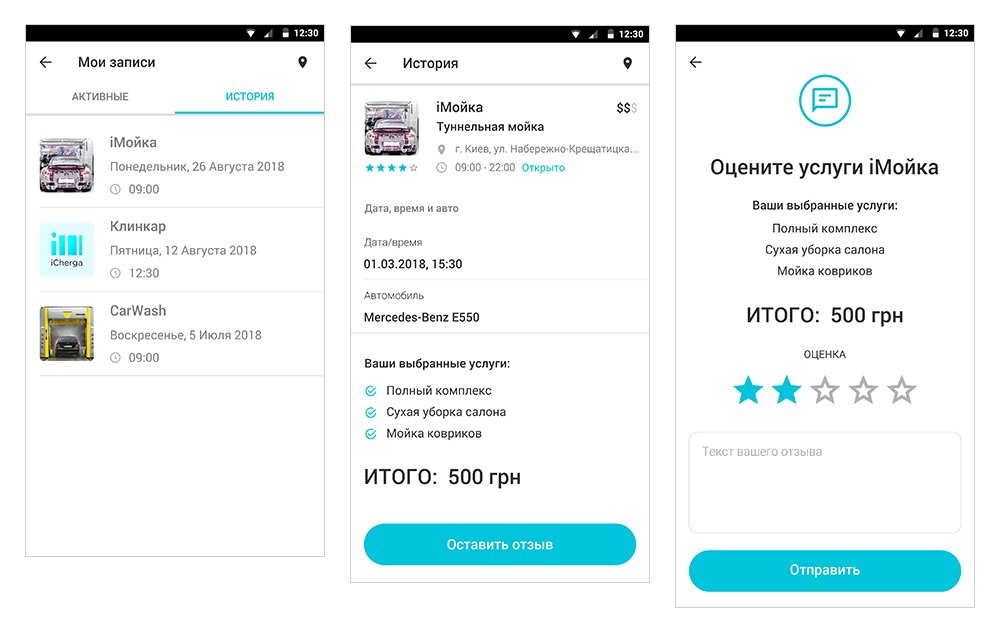 До этого мы уже делали подобное мобильное приложение для записи на услуги автомоек — АвтомойкиРУ. Поэтому создание сервиса iCherga не вызвало проблем. Единственное: АвтомойкиРу были разработаны 5 лет назад. Поэтому еще раз проработали вопросы UX и дизайна.