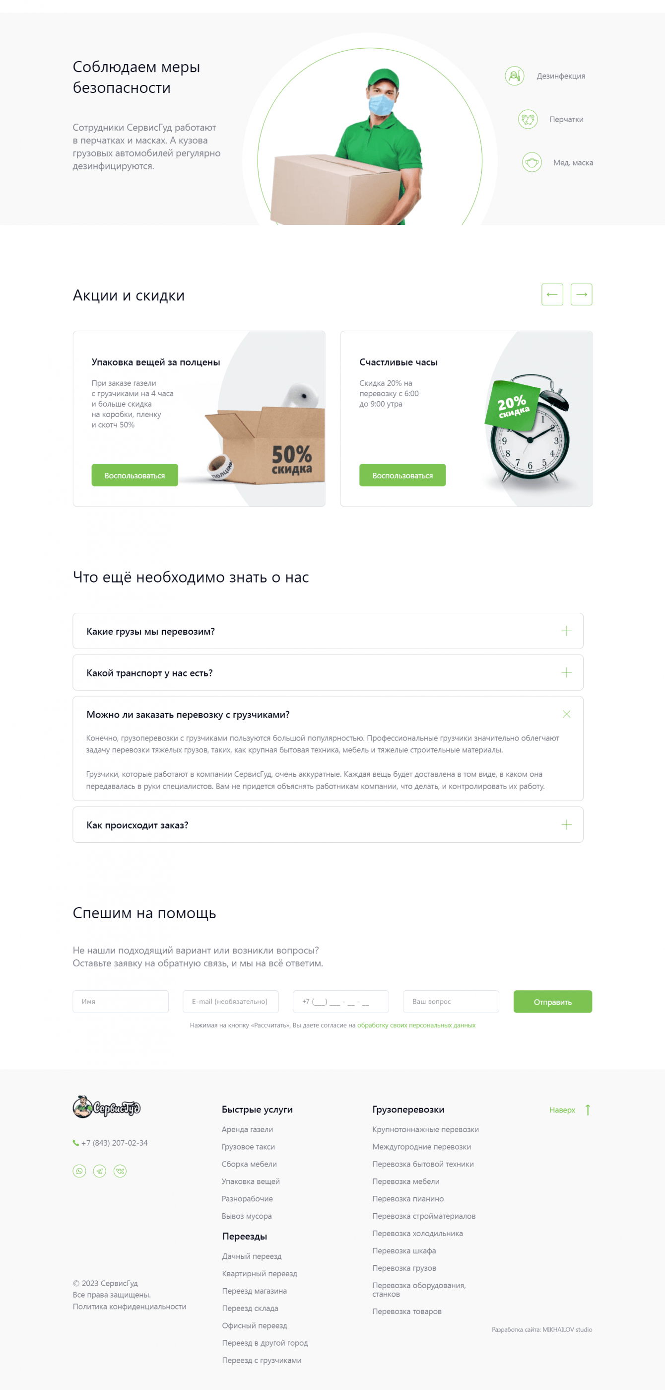- Ответы на вопросы, например, можно перевозить вещи с грузчиками, что подойдет пенсионерам, которые летом живут на даче