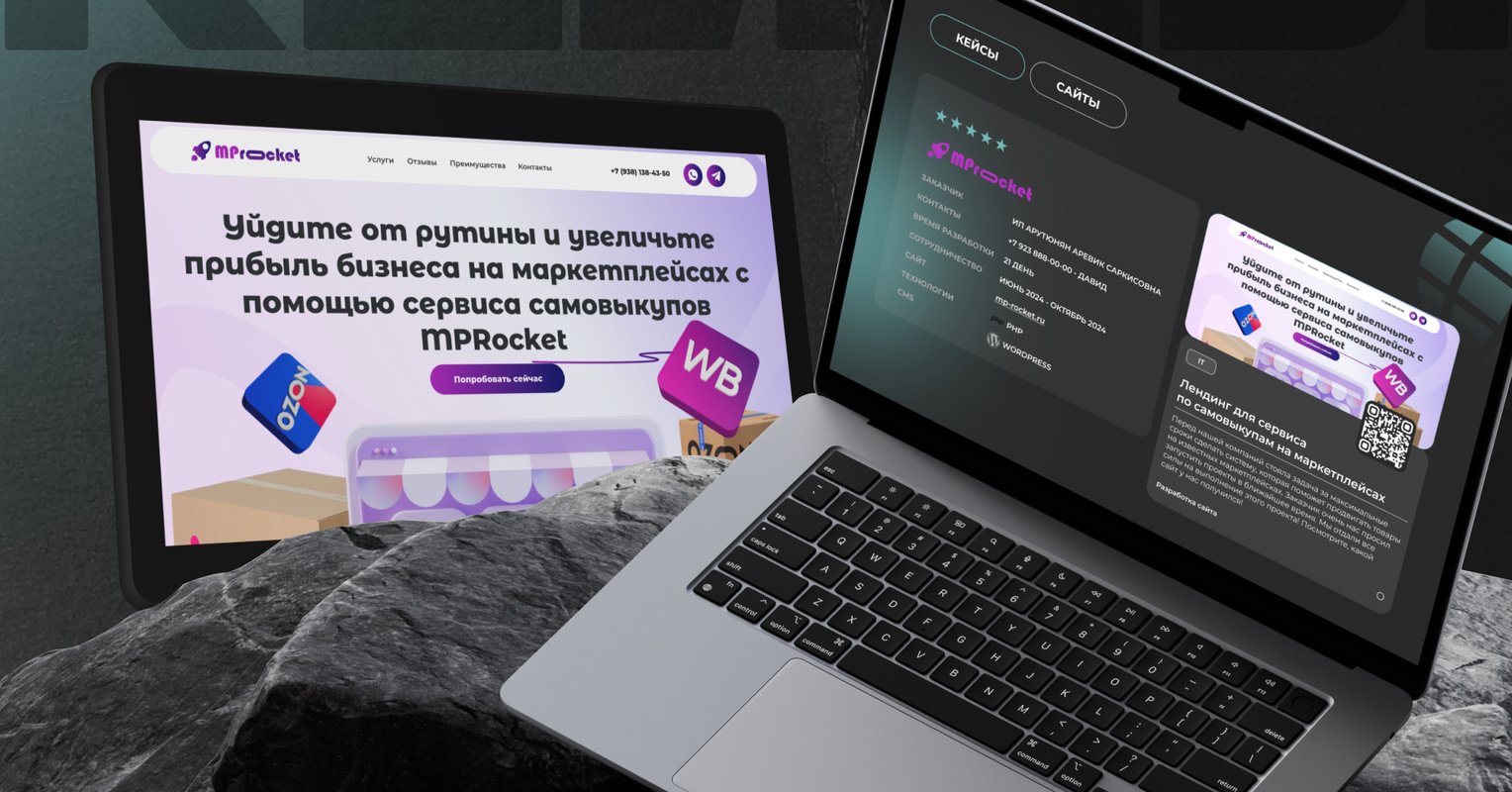 Дизайн получился лёгким и технологичным, структура — логичной и удобной, а техническая часть — быстрой и стабильной. Сайт помогает MPRocket привлекать новых клиентов, собирать заявки и усиливать бренд в digital-среде.