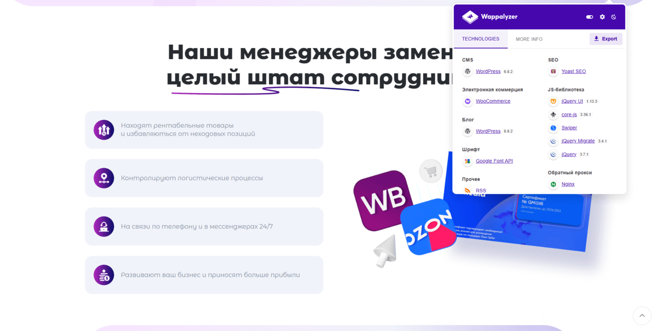 Сайт собран на PHP с CMS WordPress, что позволило создать удобную систему управления и быстро внедрять обновления.