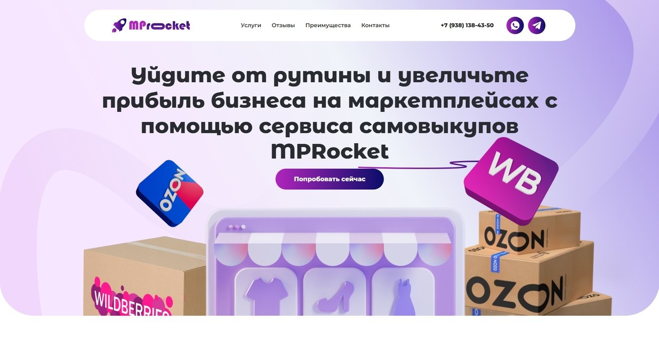 Нужно было создать сайт, который объясняет ценность платформы, ориентирован на получение заявок и демонстрирует, что MPRocket — это не «очередной инструмент», а функциональный, удобный и выгодный сервис для роста продаж.
