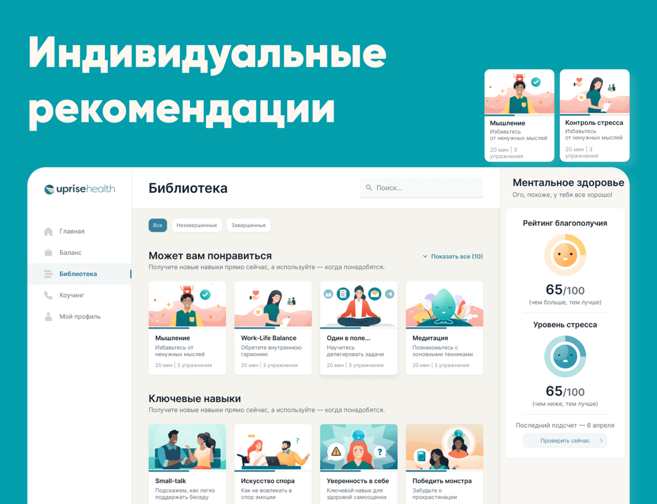 После получения результатов пользователь должен понимать, что ему необходимо делать для улучшения психологического здоровья. Для этого у сервиса реализован механизм составления индивидуальных рекомендаций.