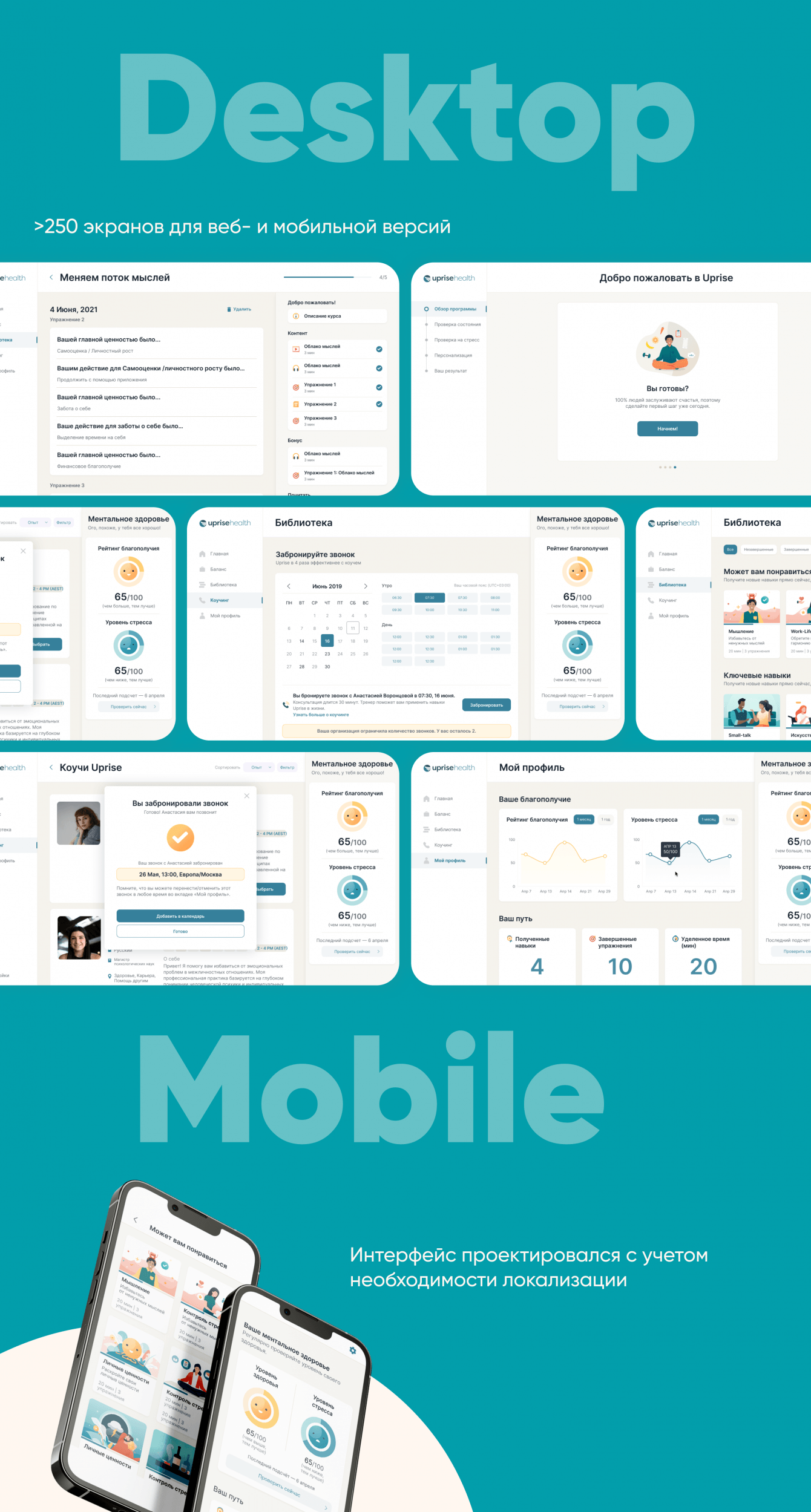 К нам обратился клиент с запросом на создание платформы, которая бы помогала отслеживать ментальное здоровье сотрудников компании и составлять для них индивидуальные рекомендации. При наличии проблем сотрудник мог бы пройти специальные курсы на платформе для улучшения своего состояния. В случаях, когда одних курсов было бы недостаточно, то прямо в приложении он мог бы назначить видео встречу со специалистом для обсуждения своих проблем.