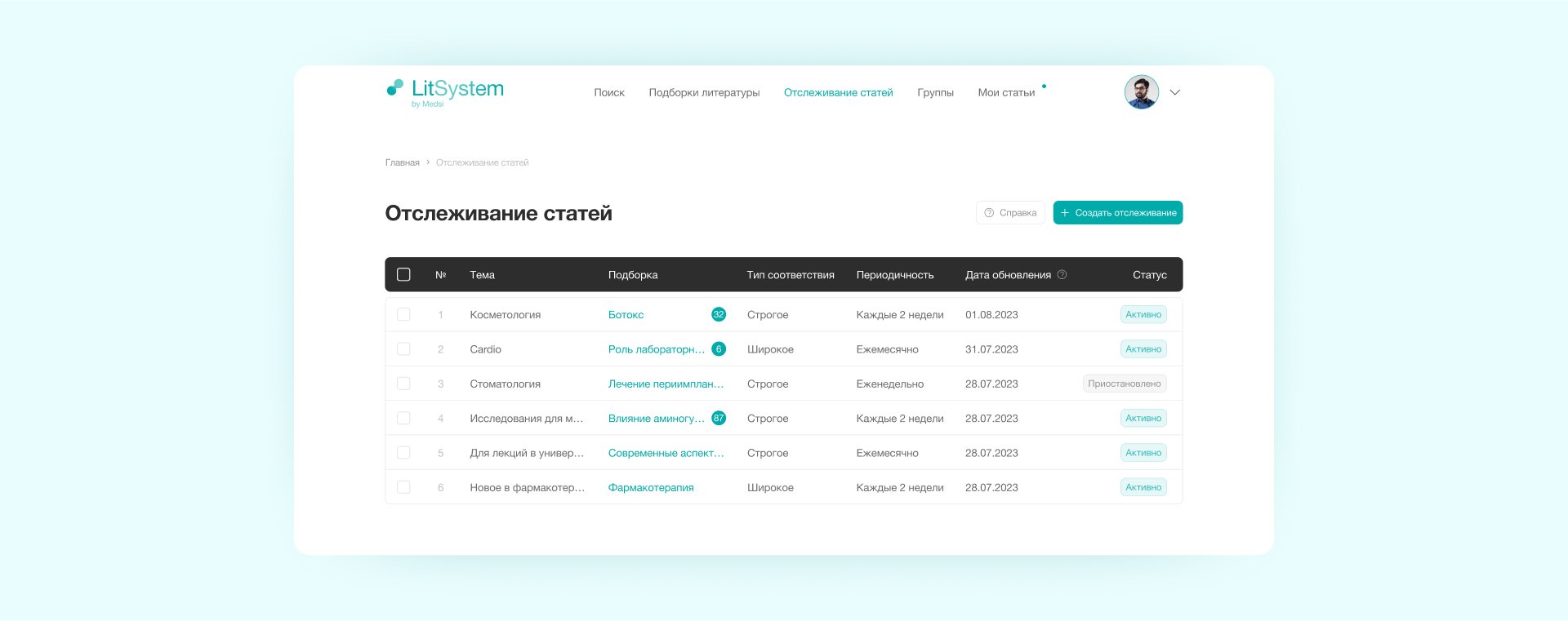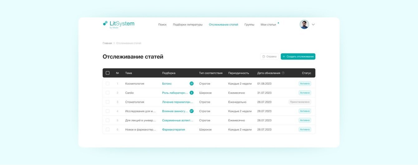 Если нужная статья не найдена, можно настроить отслеживание по запросу. При появлении подходящей статьи пользователь получает уведомление, а статья автоматически добавляется в подборку.