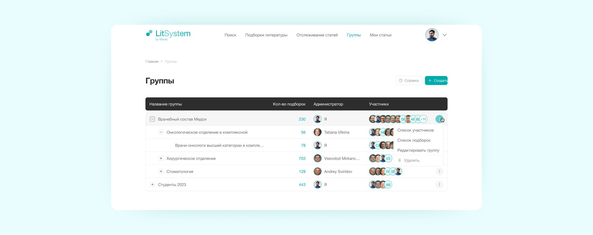 Функция групп позволяет делиться подборками литературы внутри организаций. Создавайте группы по уровням (например, для разных отделов), чтобы эффективно работать с материалами.