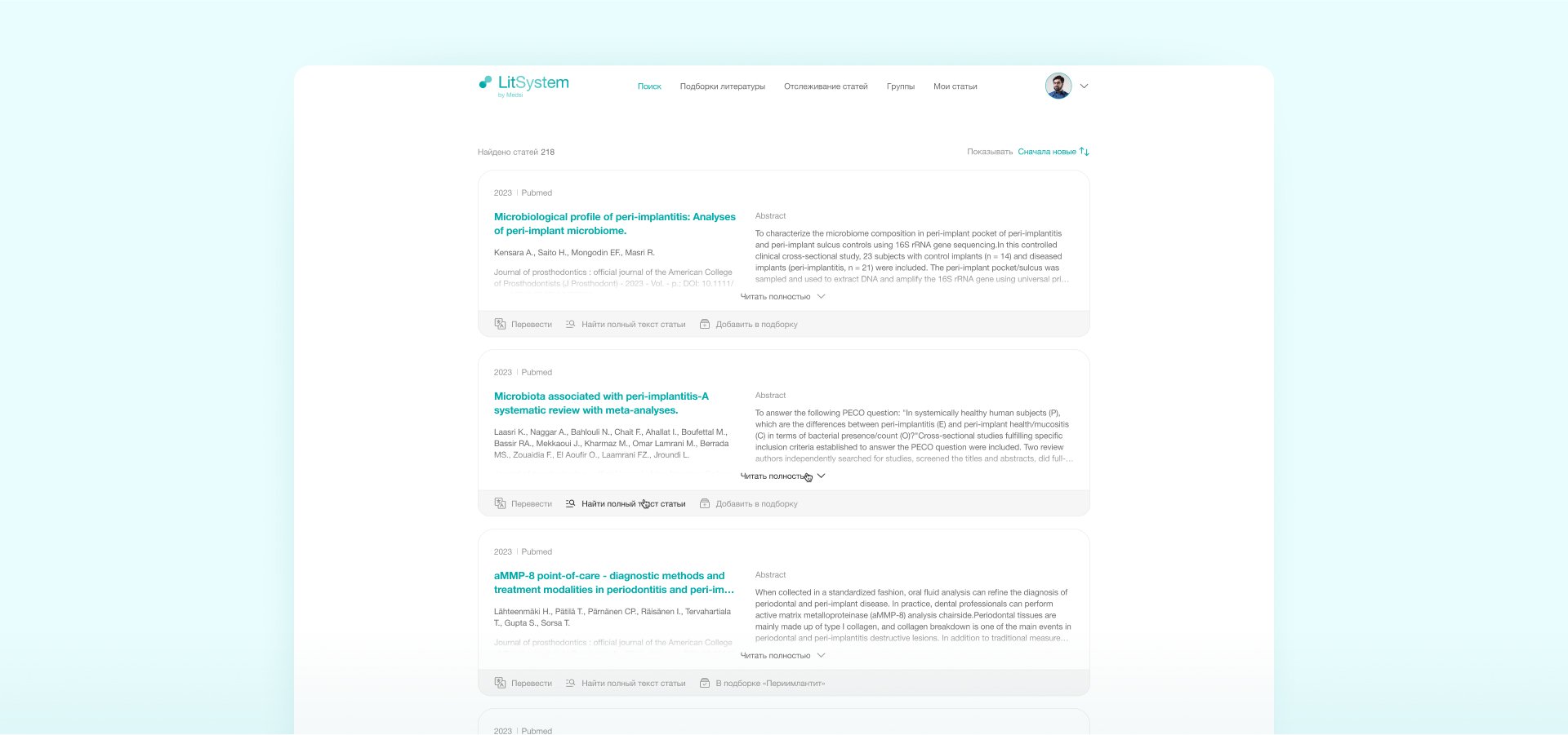 Настроили интеграцию с сервисами Pubmed, Google Shcolar, OpenAlex для поиска научных работ.
