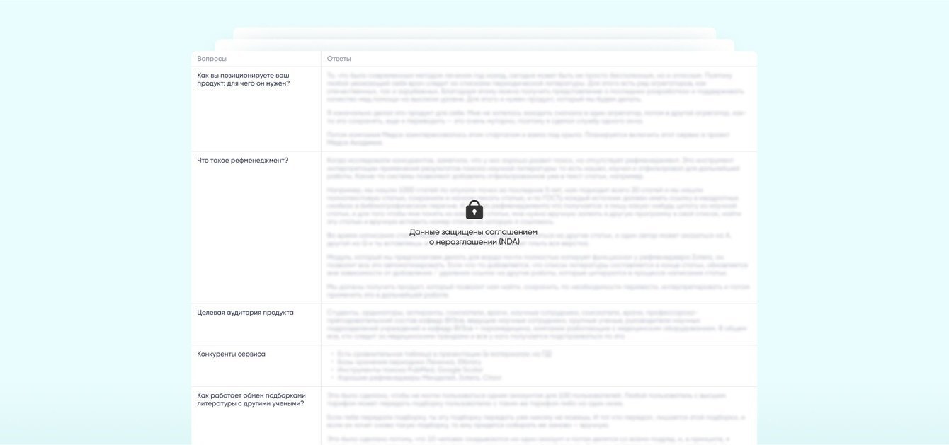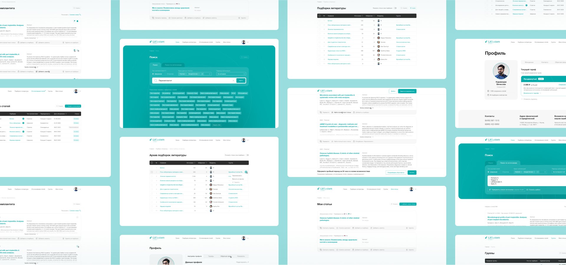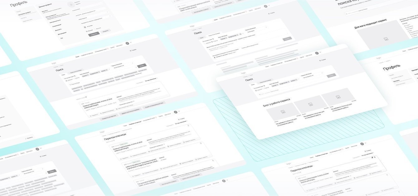 Изучили текущий сервис и подготовили ряд вопросов для заказчика, провели бизнес-интервью. В процессе встречи глубже погрузились в работу сервиса и узнали тонкости работы с научными источниками. После этого UX-аналитик изучил схожие сервисы, чтобы проанализировать, как в них решаются похожие задачи. Результат этапа — документ с итогами бизнес-интервью и примеры решений, которые сможем использовать при разработке сервиса.