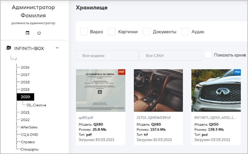 Кроме функции размещения и согласования медаплана представитель бренда централизованно добавляет всю важную информацию (презентации, имиджи, видео, прайс-листы, брошюры и т.п.) для внимания Дилера для ознакомления или размещения на дилерских сайтах.