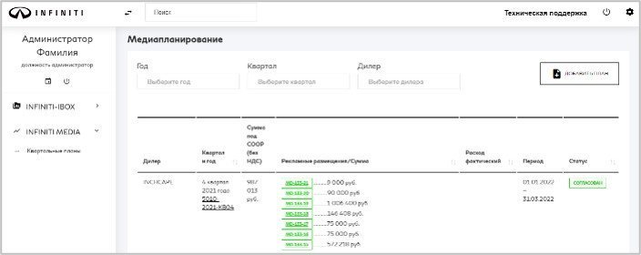 В этом случае Представитель Дилера добавляет квартальный план с указанием планируемой суммы затрат на квартал. После добавления плана у Дилера появляется возможность добавить размещение в рамках данного квартального плана.