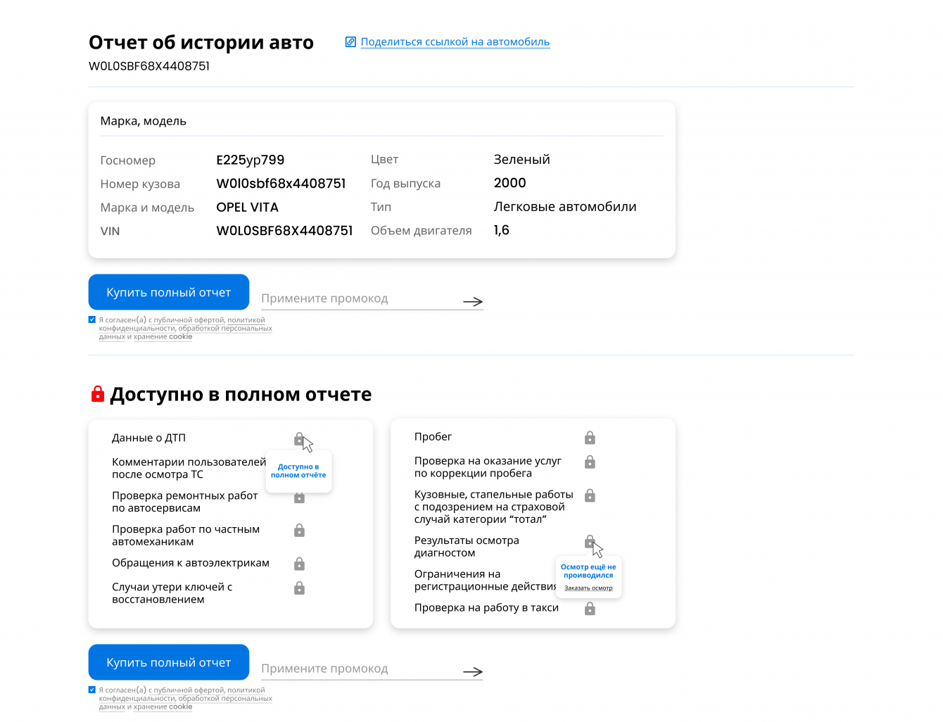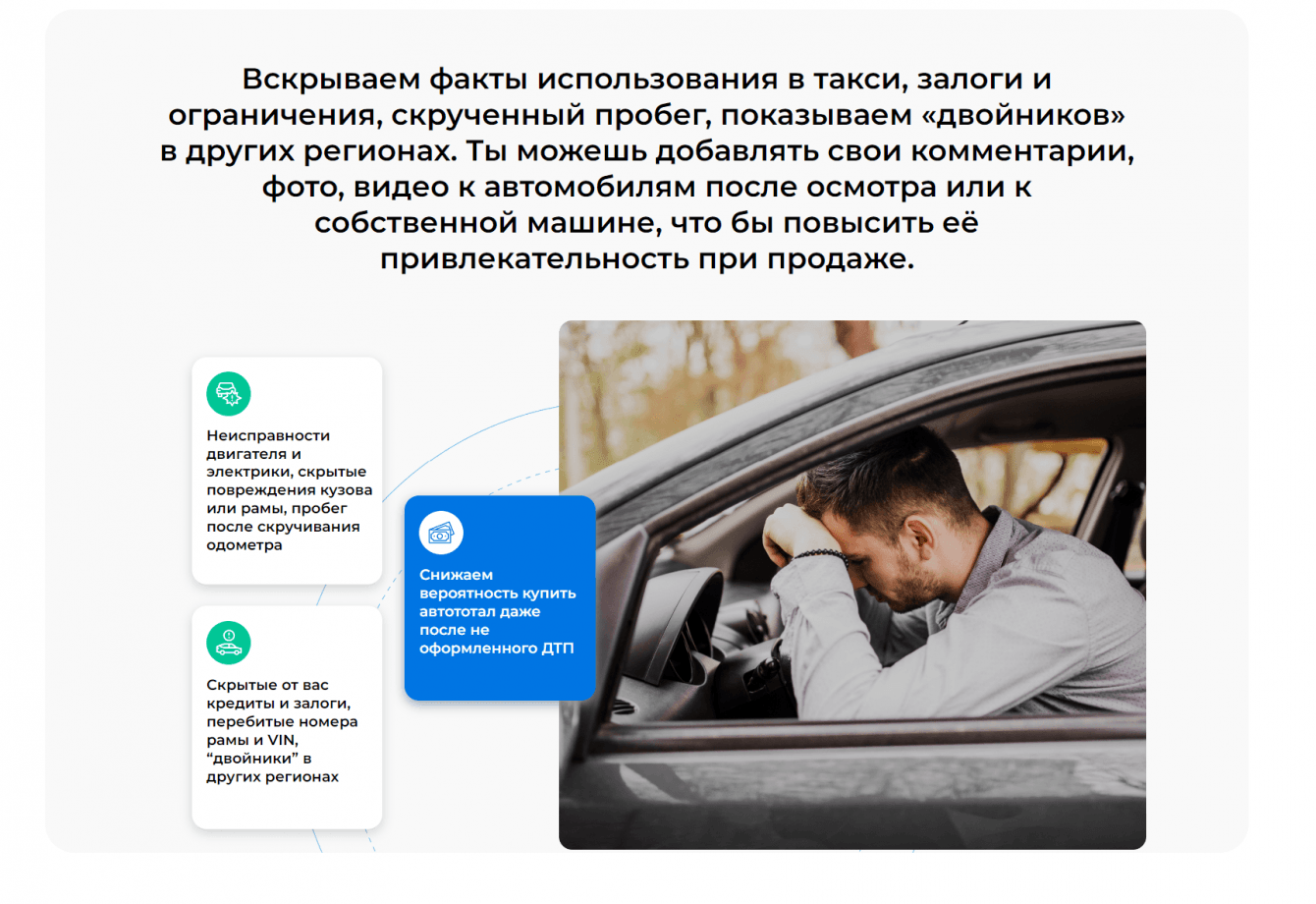 Проведя анализ уже существующих сервисов, мы постарались максимально упростить и улучшить пользовательский опыт. Для регистрации мы решили использовать только номер телефона, что значительно повышает лояльность и снижает количество уходов с сайта. Сформированные отчеты проверки можно посмотреть онлайн или скачать в pdf, а также поделиться этим отчётом с другими пользователями. Заказ отчёта через бота в Telegram также стало удобным дополнением для пользователей, которые привыкли работать с этим мессенджером. Далее нами была разработана функция добавления отзывов об автомобиле в отчет. Пользователь заказавший отчёт может увидеть комментарии об автомобиле, оставленные другими владельцами. Все эти функции позволяют людям легко взаимодействовать с сервисом и не испытывать раздражение и другие негативные эмоции, что самое главное в разработке любого продукта. Мы постарались найти баланс между выгодой для бизнеса заказчика и удобства пользователей.