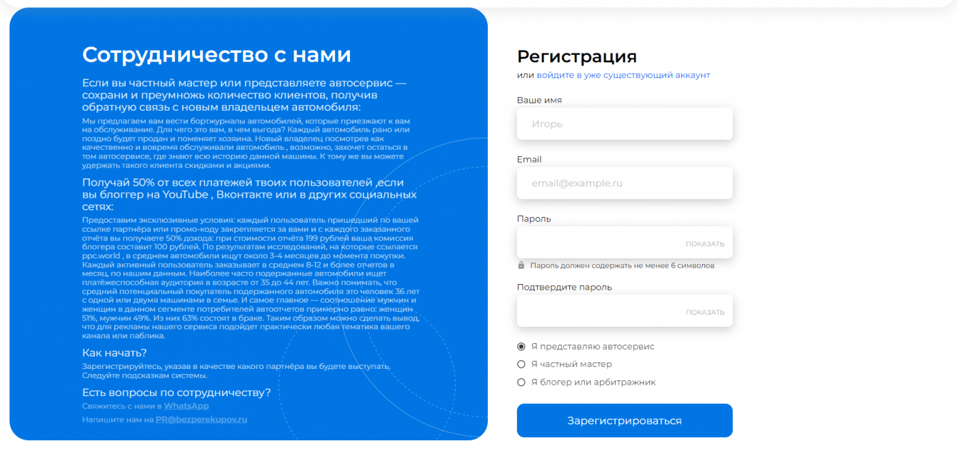 Перед нами стояла задача разработать удобный сервис, с интуитивно понятной логикой и приятным современным интерфейсом. Кроме того добавить личный кабинет для партнерских авто-сервисов и удобную систему лояльности с личным дашбордом для блогеров-партнёров. Также создать бота в Telegram с дублированием функций сайта.
