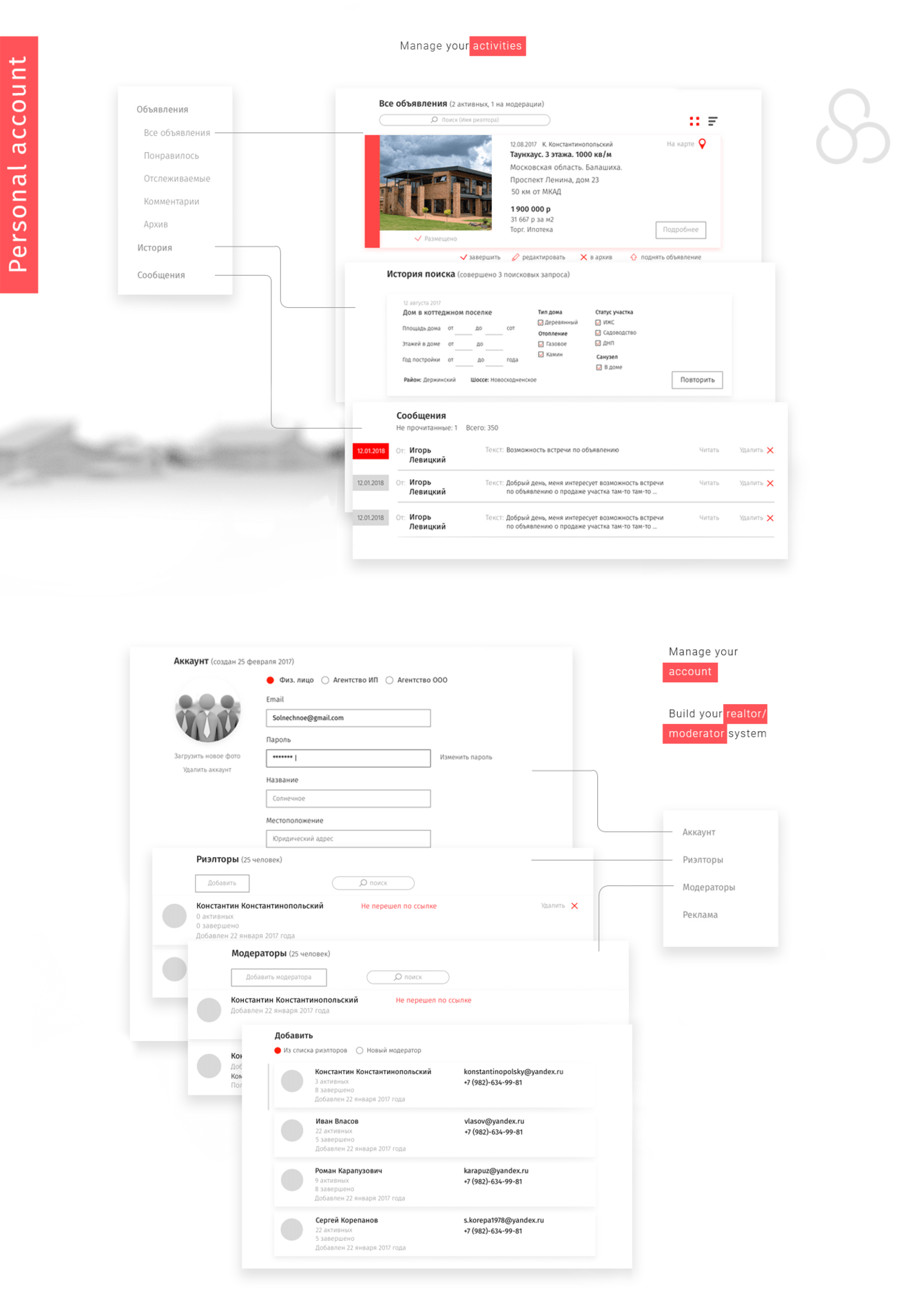 Создали удобный сервис по размещению объявлений о продаже, аренде или сдачи загородной недвижимости. Теперь агентства могут управлять объявлениями которые хотят назначит своим риелторам или сделать их модератором который контролирует объявления агентства
