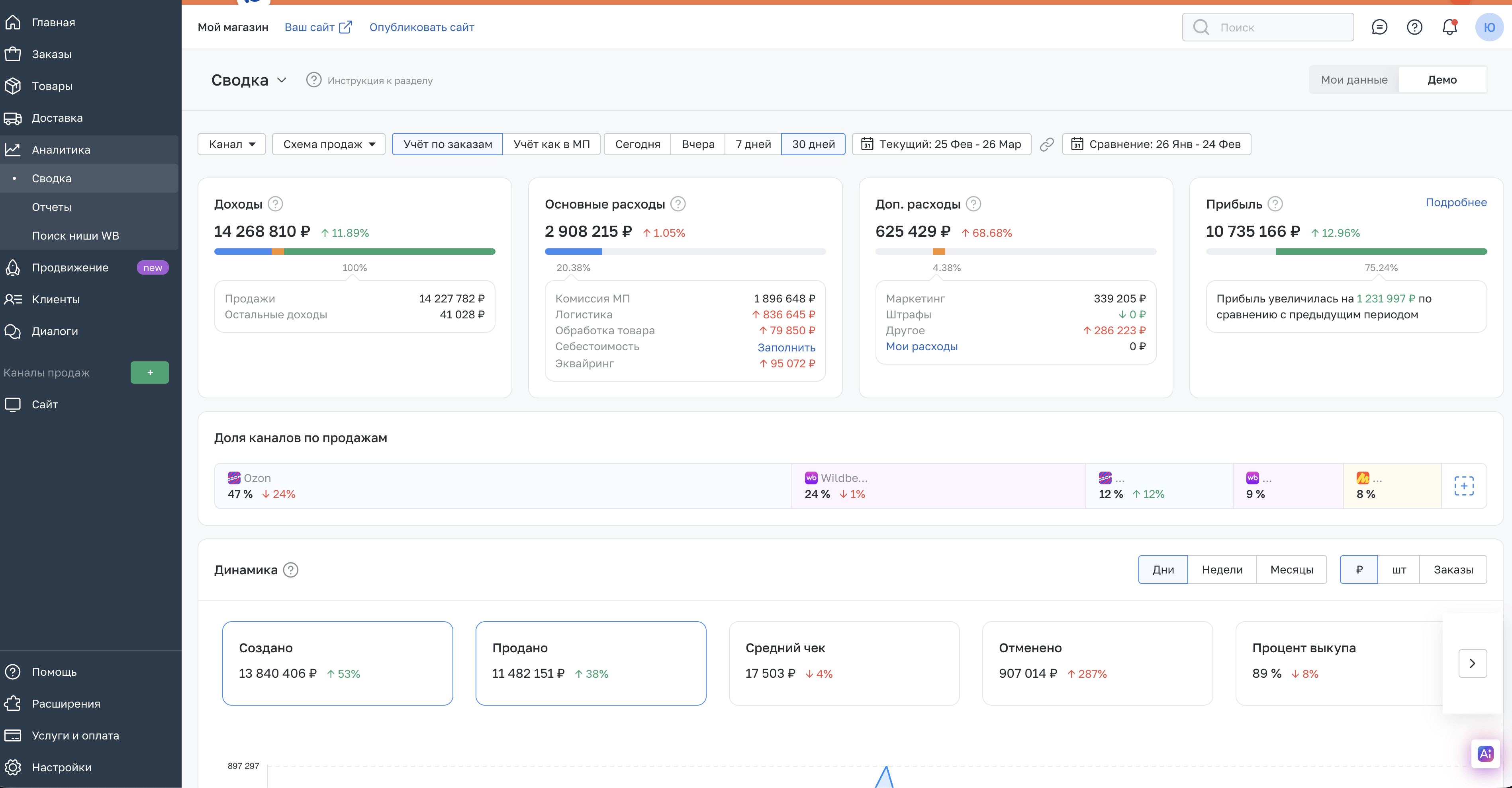 - контроль над клиентским опытом (возможность кастомизации карточек товаров, сбор базы клиентов для рассылок и ремаркетинга)