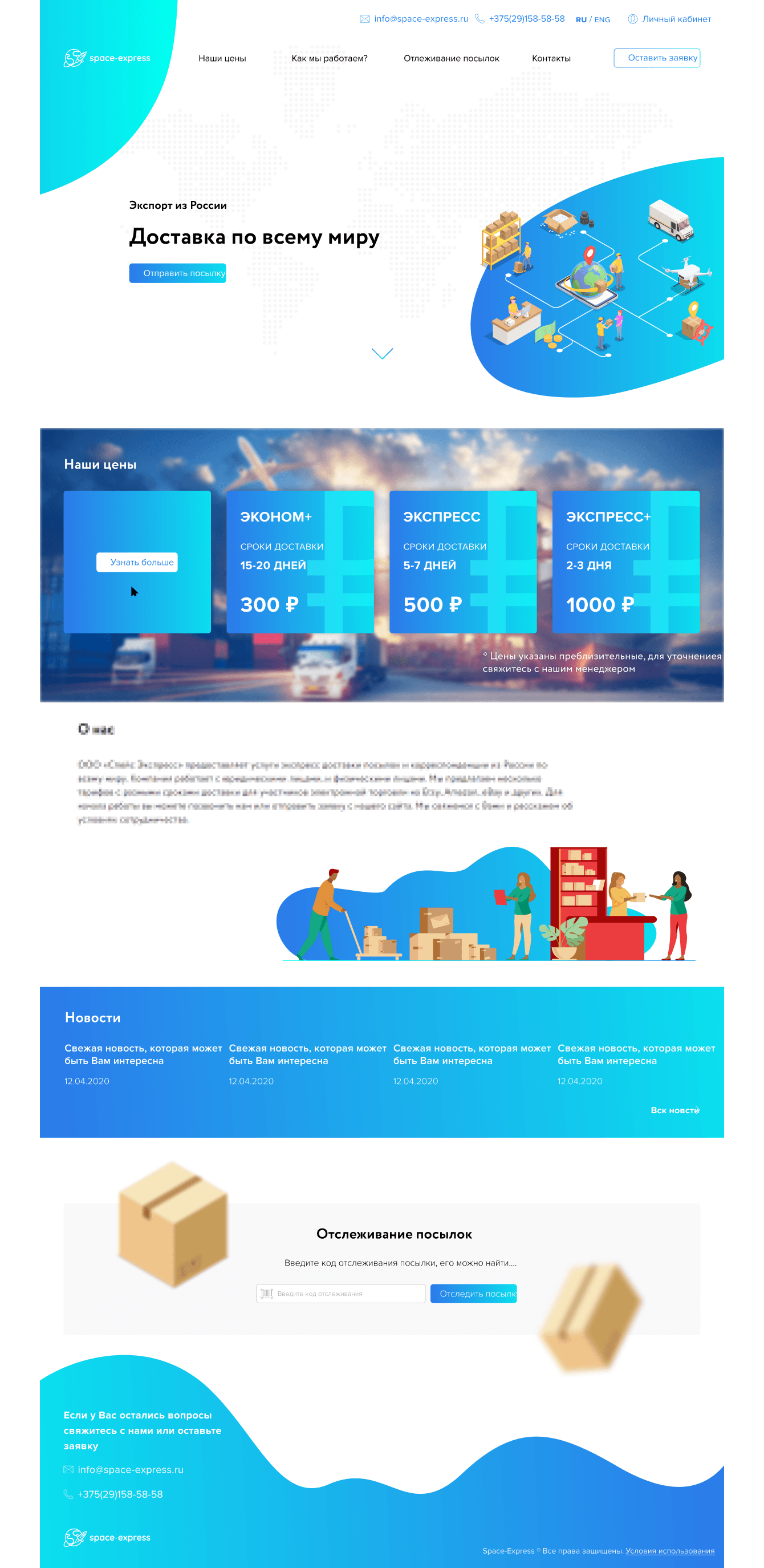 Главная страница первоначально была реализована как лендинг, презентующий сервис и отвечающий на основные вопросы потенциальных клиентов - функционал, тарифы, способы сотрудничества. Постепенно публичная часть переросла в полноценный многостраничный сайт с подразделами - тарифы, вопрос-ответ, отслеживание посылок и т.п.