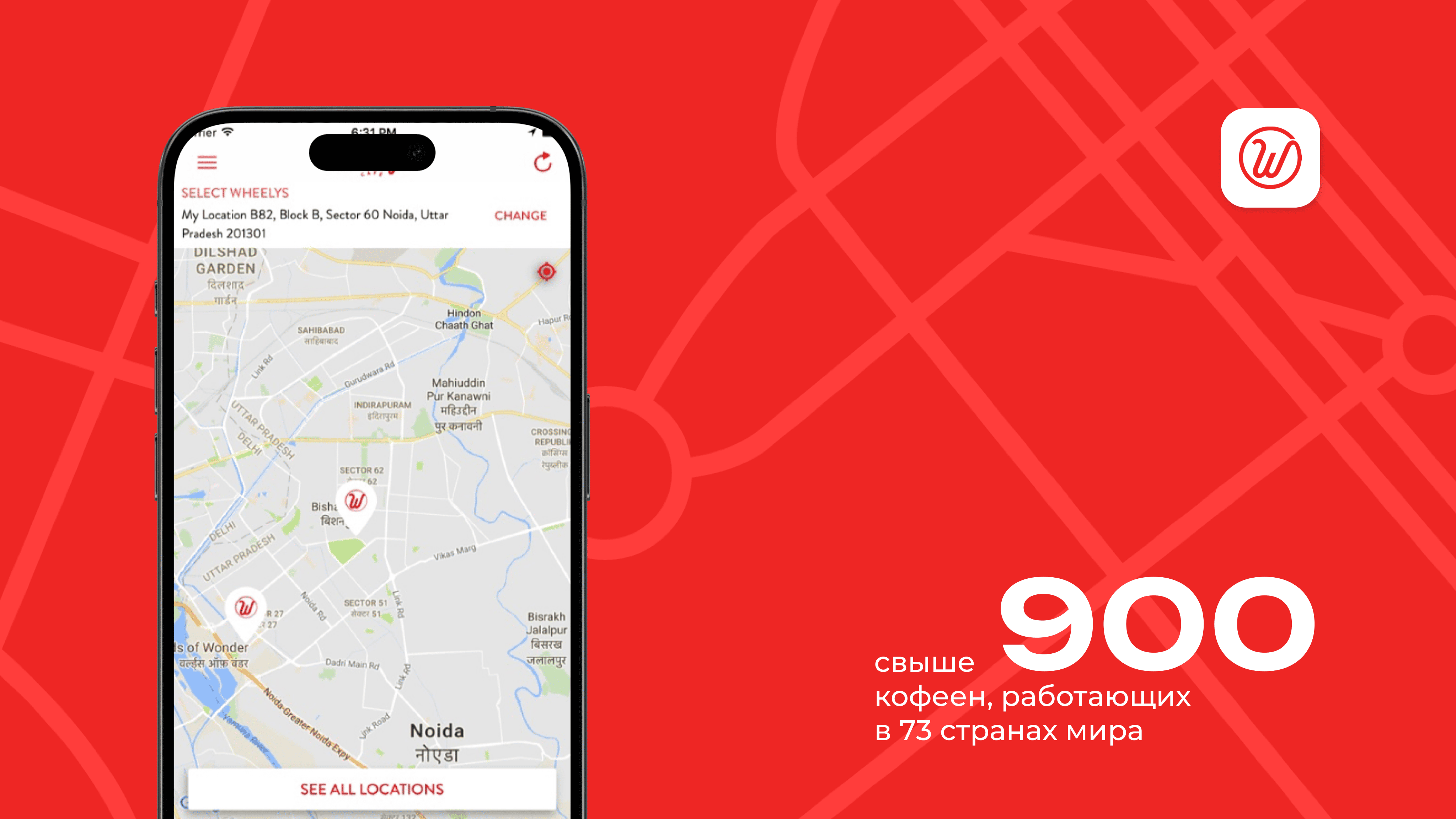 - Геолокация кофеен: Реализовать интерактивную карту для быстрого поиска ближайших точек Wheelys с учетом местоположения пользователя.