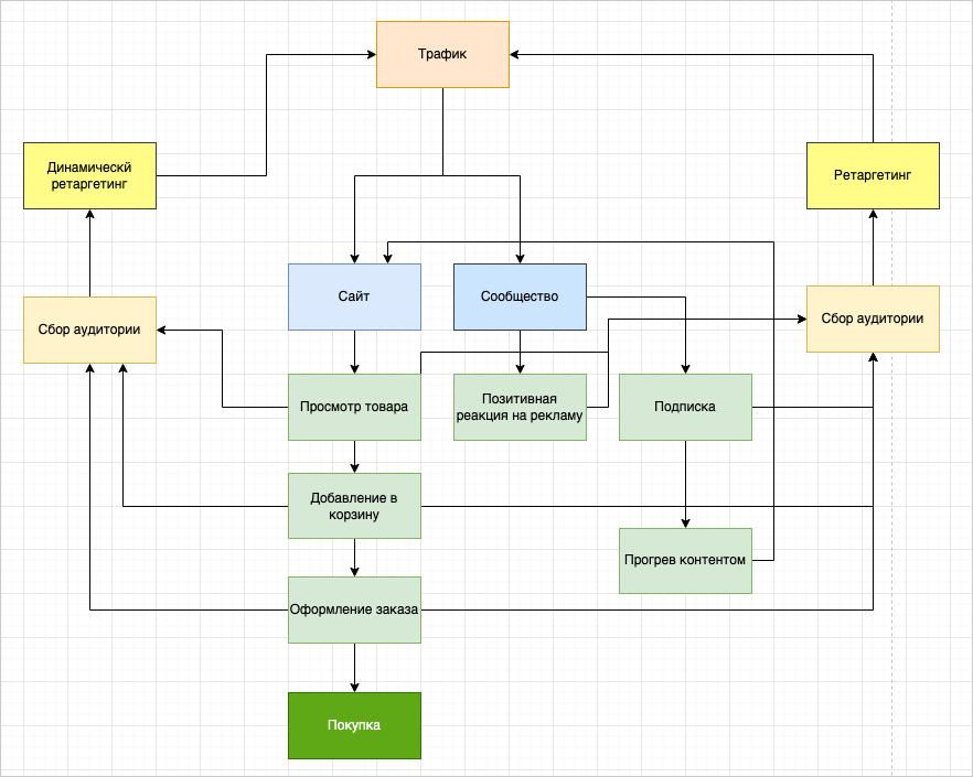 Вывод. Реклама привлекала людей в сообщество, но они не покупали одежду через магазин во ВКонтакте. Людям привычнее делать это на сайте интернет-магазина. Поэтому мы решили вести людей из ВКонтакте на сайт по стратегии в несколько касаний.