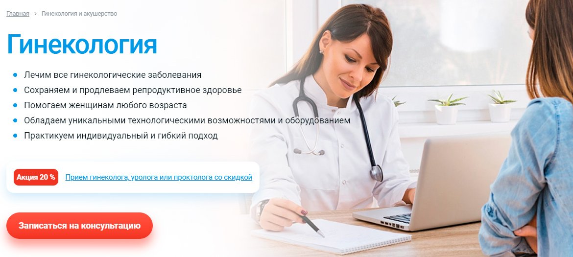 На страницах направлений и услуг в первом презентационном блоке учли все самое необходимое для быстрого принятия решения: