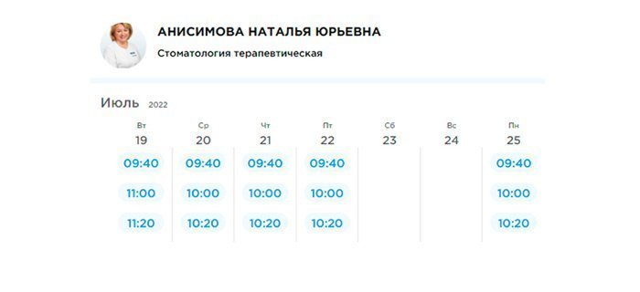 Произведена интеграция с внешней системой по учету времени записи Gbooking. После нажатия на кнопку “записаться на прием” открывается всплывающее окно, где пользователь может выбрать удобный для него интервал времени. Далее заполняются контактные данные, которые автоматически отправляются во внешнюю систему.