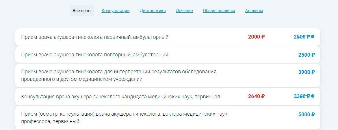 - Отображаются перечеркнутые цены при действующих акциях на услуги
