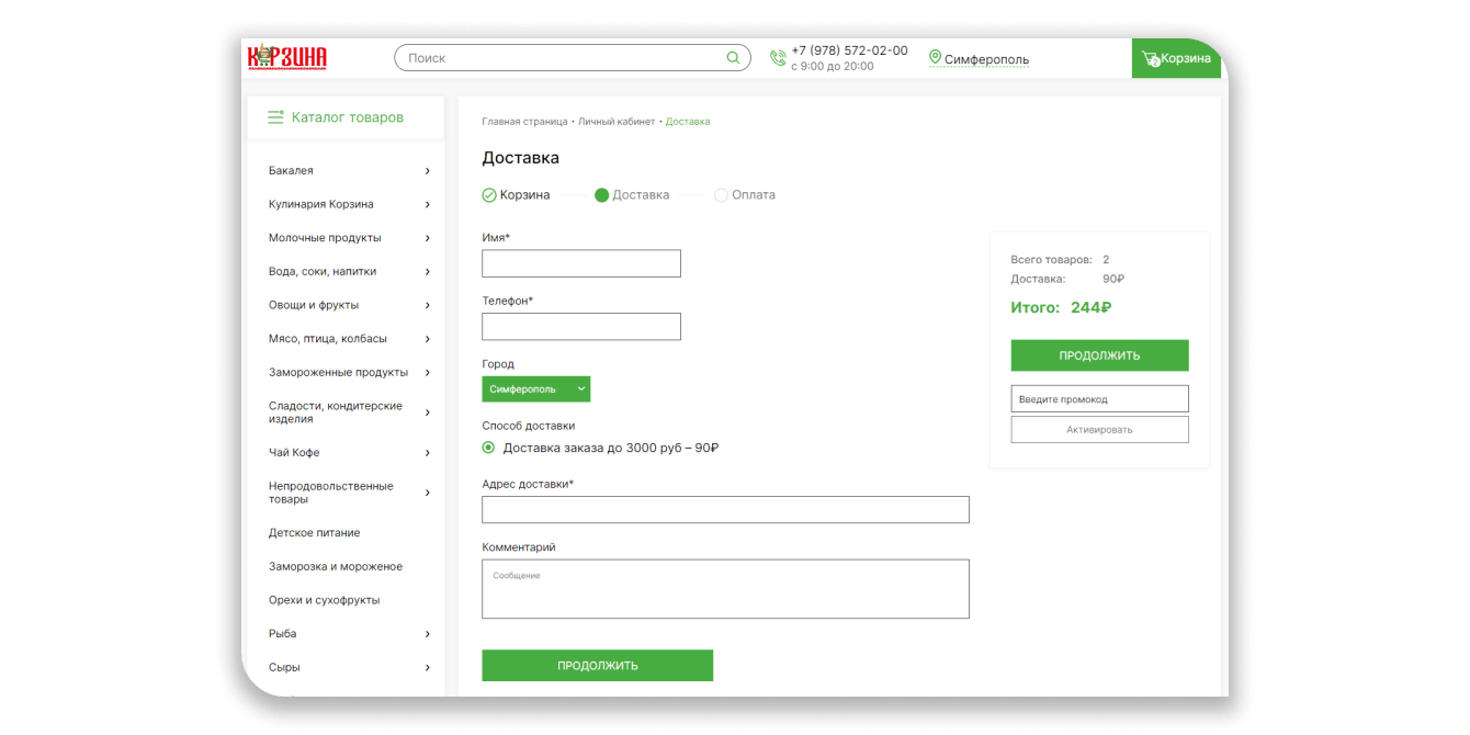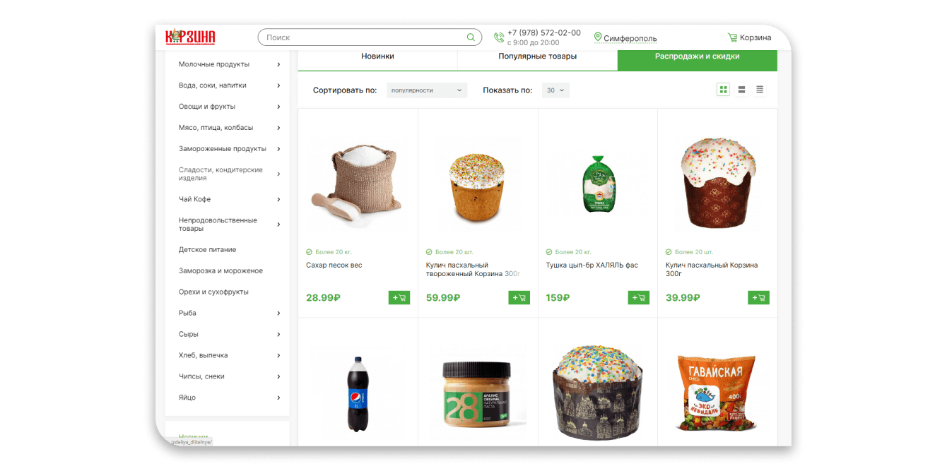 Теперь у покупателей в Крыму есть возможность заказывать продукты онлайн с доставкой в Симферополь, Бахчисарай, Евпаторию. Количество заказов и покупателей увеличивается благодаря удобству сайта и регулярному обновлению ассортимента.