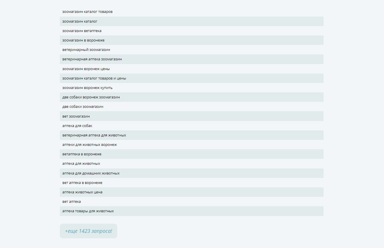Интернет-магазин — это всегда масштабный список товаров, каждый из которых, потенциально, могут искать по названию, не говоря уже об общих коммерческих запросах. Таким образом, семантическое ядро из 1000 основных запросов — не фантастика, а будничная задача.