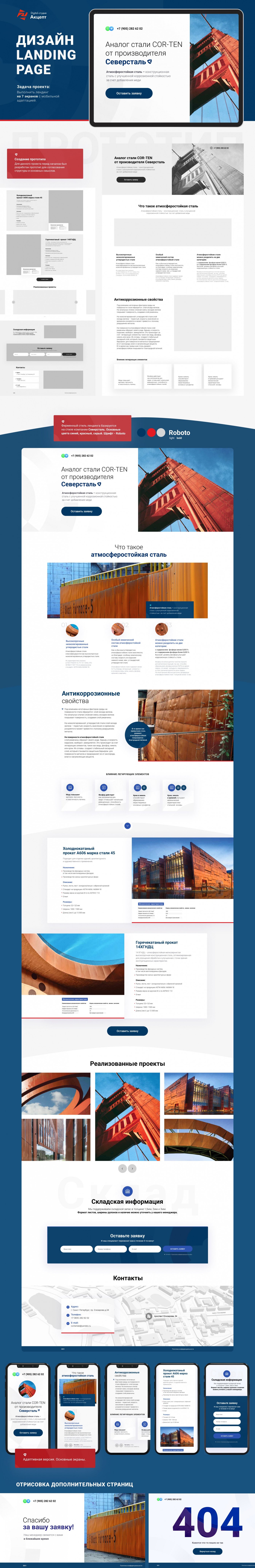 Задача: выполнить лендинг на 7 экранов с мобильной адаптацией.
