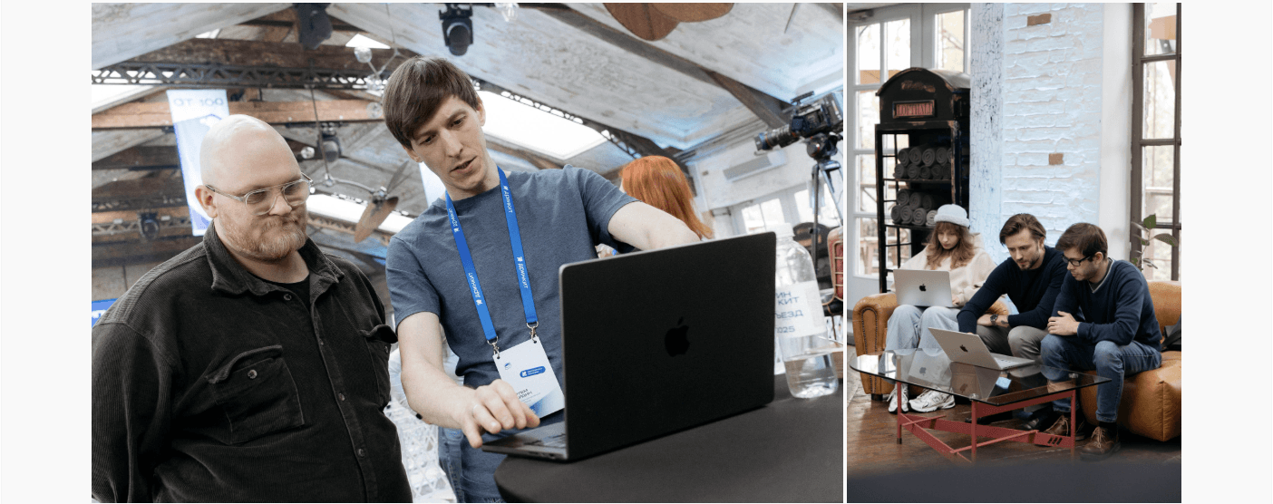И важный поворот — часть нашей дизайн-команды работала на событии вживую. Мы всегда приходим на такие мероприятия до начала и помогаем спикерам на месте вносить правки и обновления по выступлениям. Участники говорят, что это и есть настоящая дизайн-поддержка!