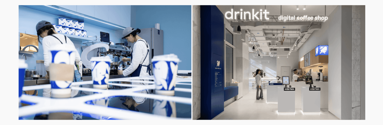 Дринкит — сеть кофеен нового формата, проект компании Dodo Brands. Здесь нет привычных касс: клиенты оформляют и оплачивают заказ заранее в приложении или на экране в кафе, а готовый напиток ждет по готовности на специальной стойке без очередей.